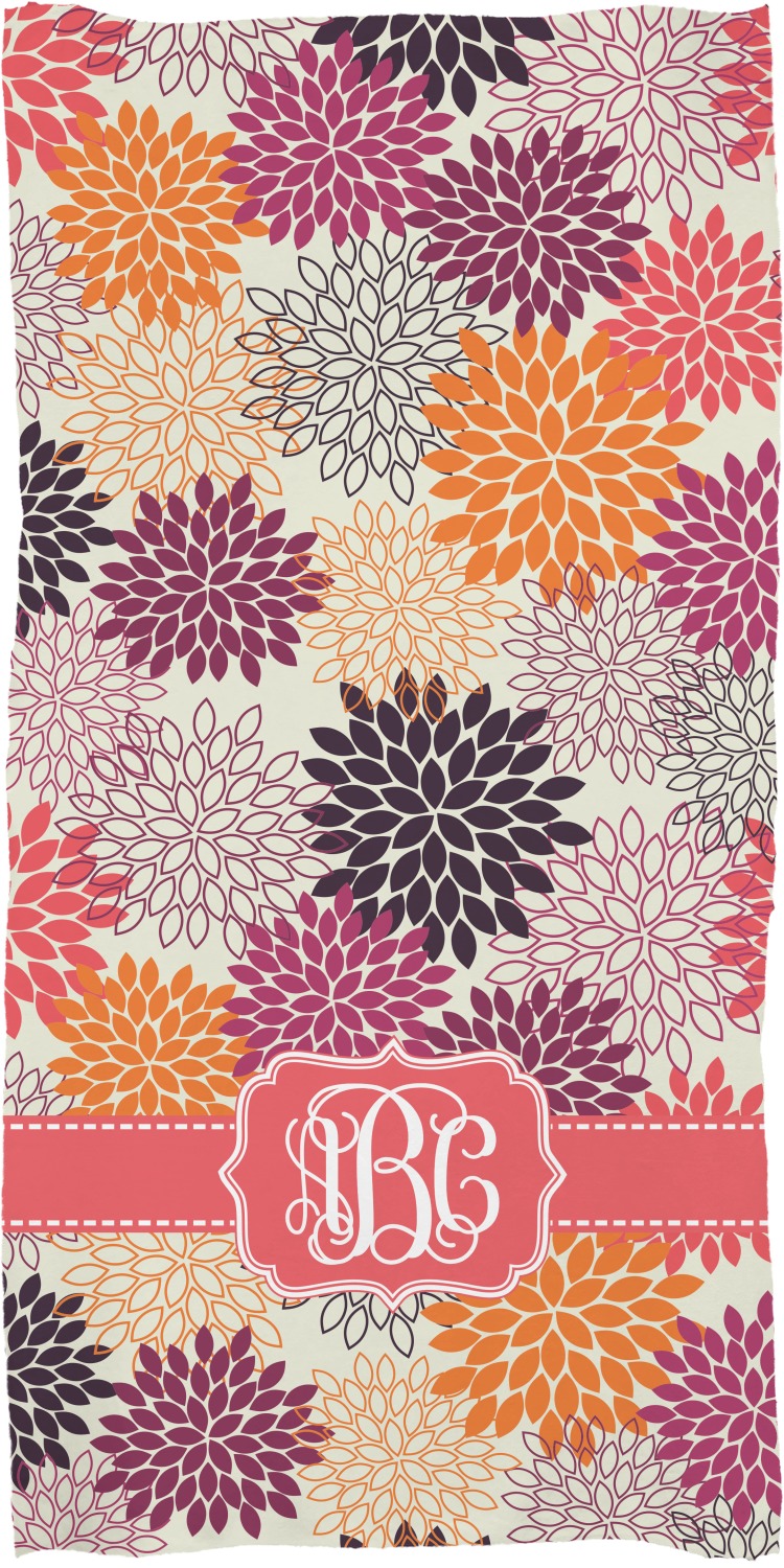 These customized bath towels are slightly larger than your standard towel and are the ideal size for wrapping around your body. They measure approximately 60" x 30". Your customization is displayed across the entire front face of the towel, while the back is white.