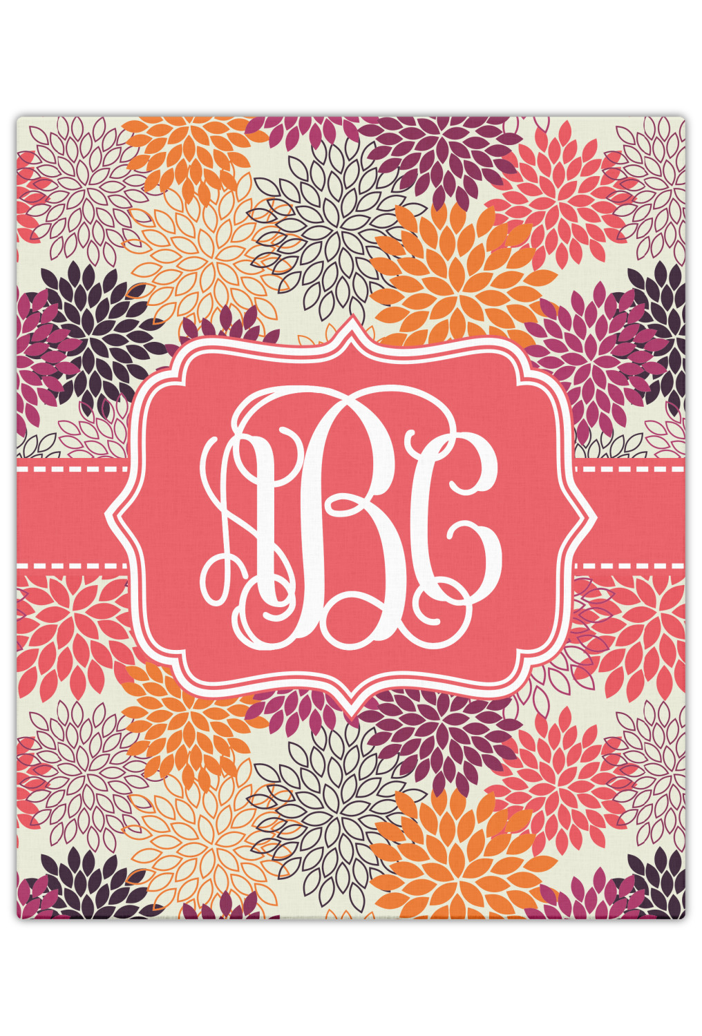 Autumn is in the air. You can feel the cool fall breeze when you see the fall foliage of red, orange, and plum mums on a tan background. The design has a classic ribbon with a decorative label in a beautiful fall color of blood orange. The personalization is an interlocking monogram, but can just as easily be a name, an initial or any text that you would like.