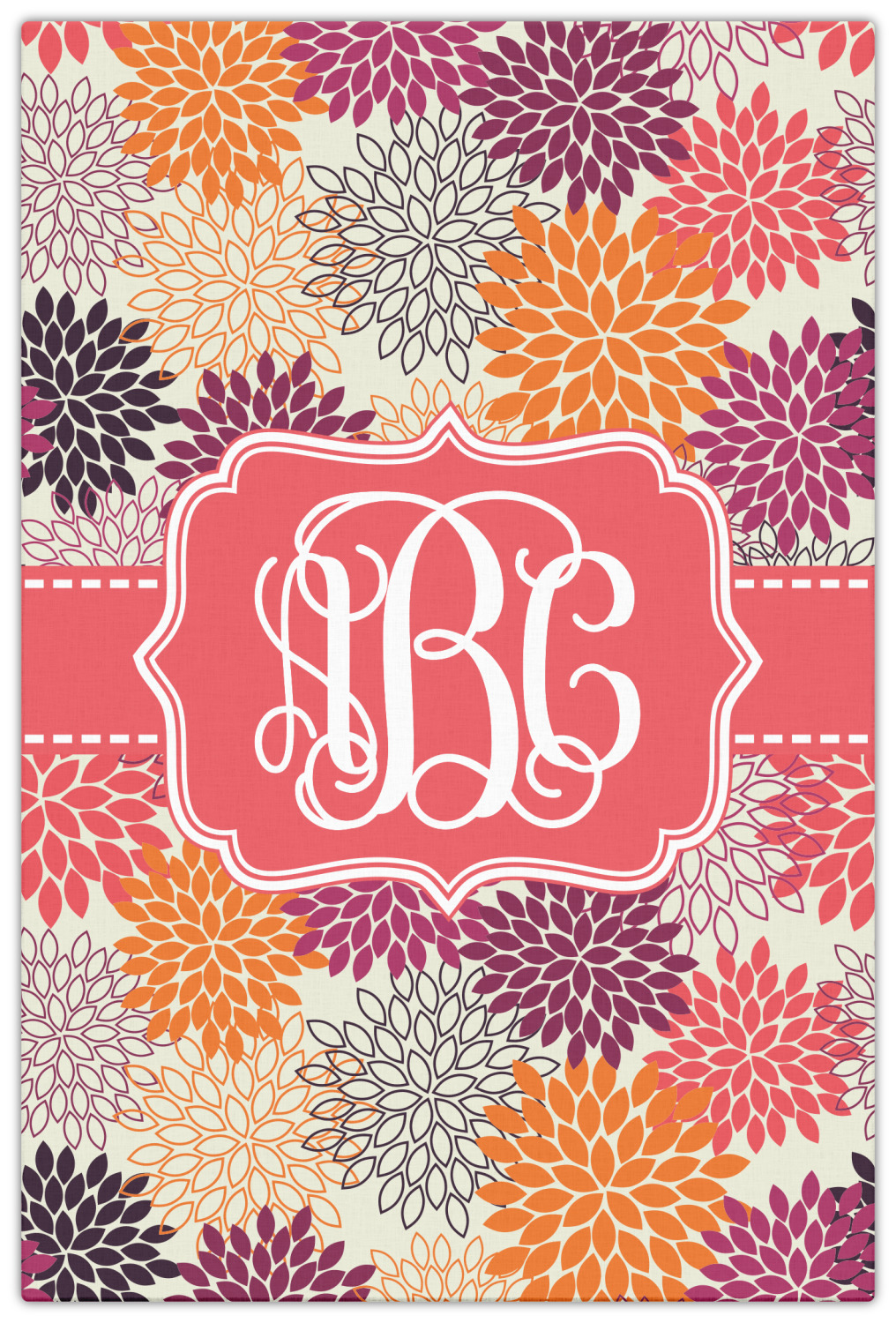 Autumn is in the air. You can feel the cool fall breeze when you see the fall foliage of red, orange, and plum mums on a tan background. The design has a classic ribbon with a decorative label in a beautiful fall color of blood orange. The personalization is an interlocking monogram, but can just as easily be a name, an initial or any text that you would like.