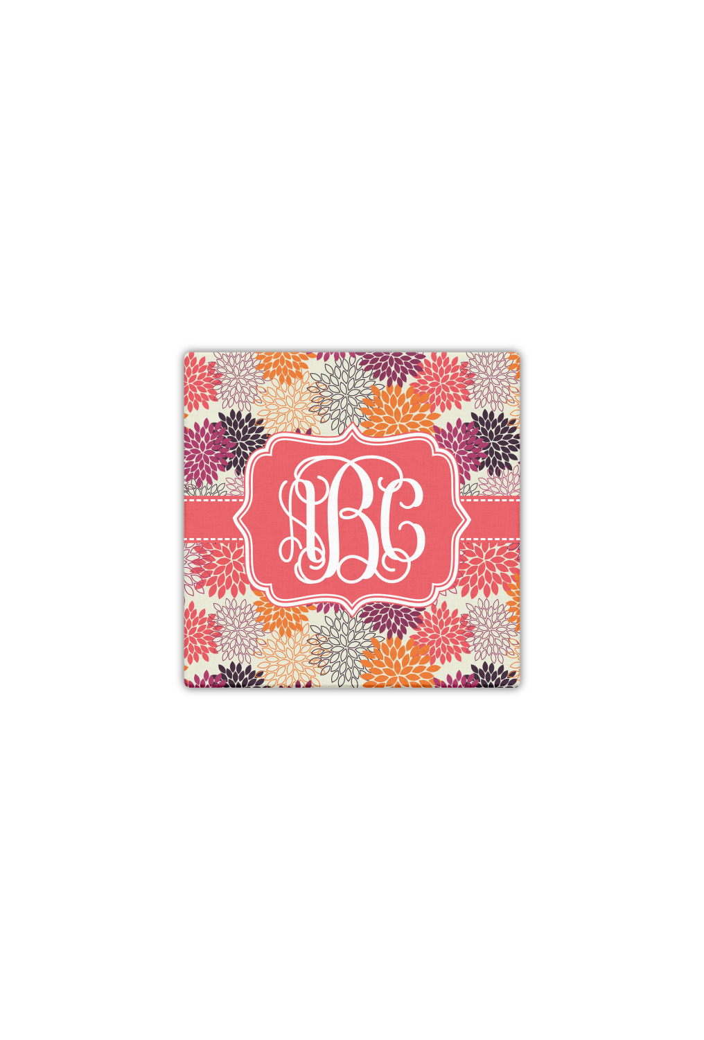 Autumn is in the air. You can feel the cool fall breeze when you see the fall foliage of red, orange, and plum mums on a tan background. The design has a classic ribbon with a decorative label in a beautiful fall color of blood orange. The personalization is an interlocking monogram, but can just as easily be a name, an initial or any text that you would like.