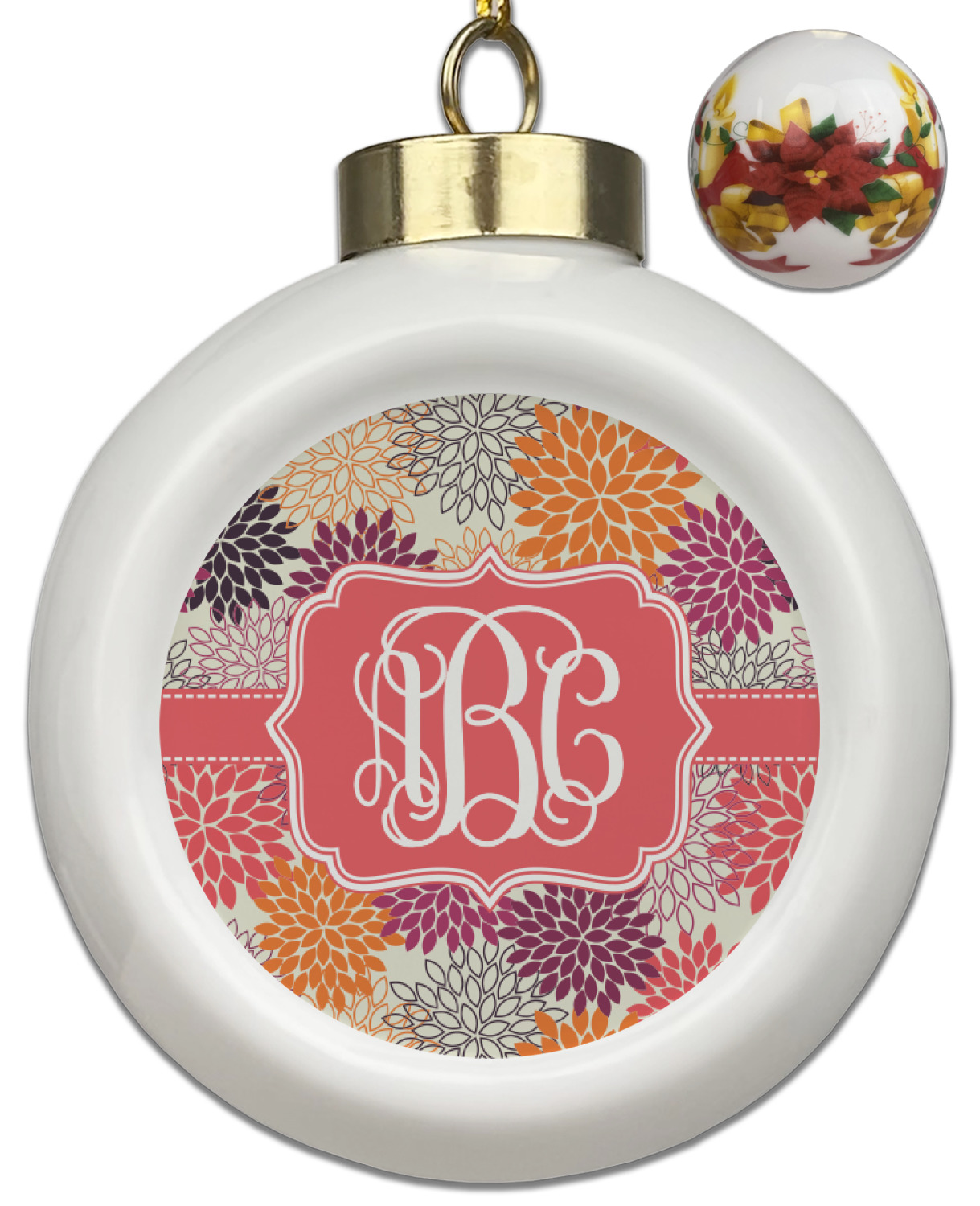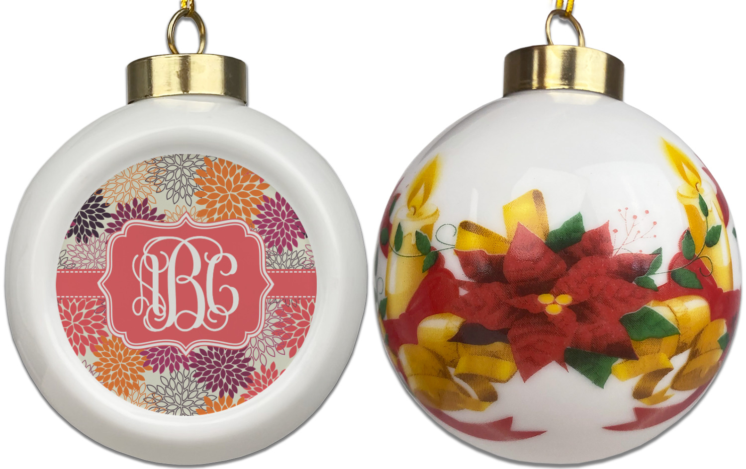 Our Christmas ornaments are a unique ceramic ball shape with a twist as it has a flat face to display your custom design! Select from one of our two design types - Christmas Tree or Poinsettia Garland - to adorn the curved back of your personal design. Each ornament measures 3H x 2.5W x 2D accompanied with a gold string accent for finishing touches to hang on your beautiful Christmas tree!