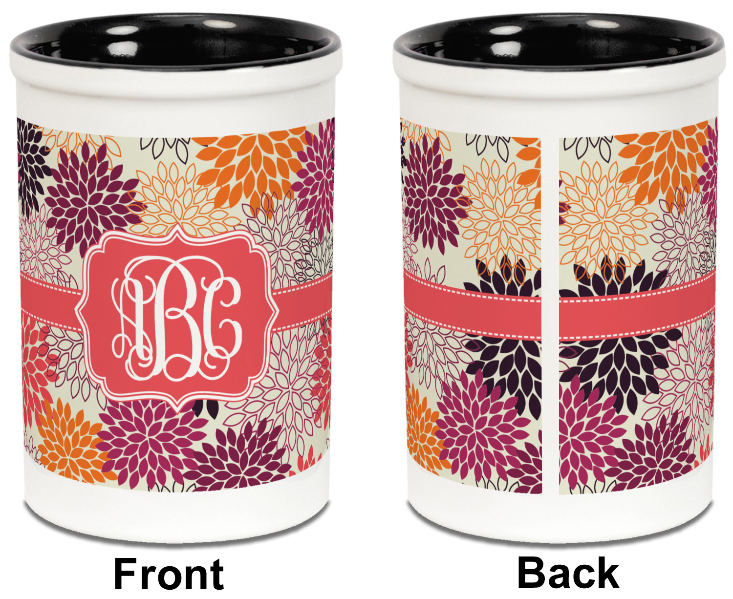 Autumn is in the air. You can feel the cool fall breeze when you see the fall foliage of red, orange, and plum mums on a tan background. The design has a classic ribbon with a decorative label in a beautiful fall color of blood orange. The personalization is an interlocking monogram, but can just as easily be a name, an initial or any text that you would like.