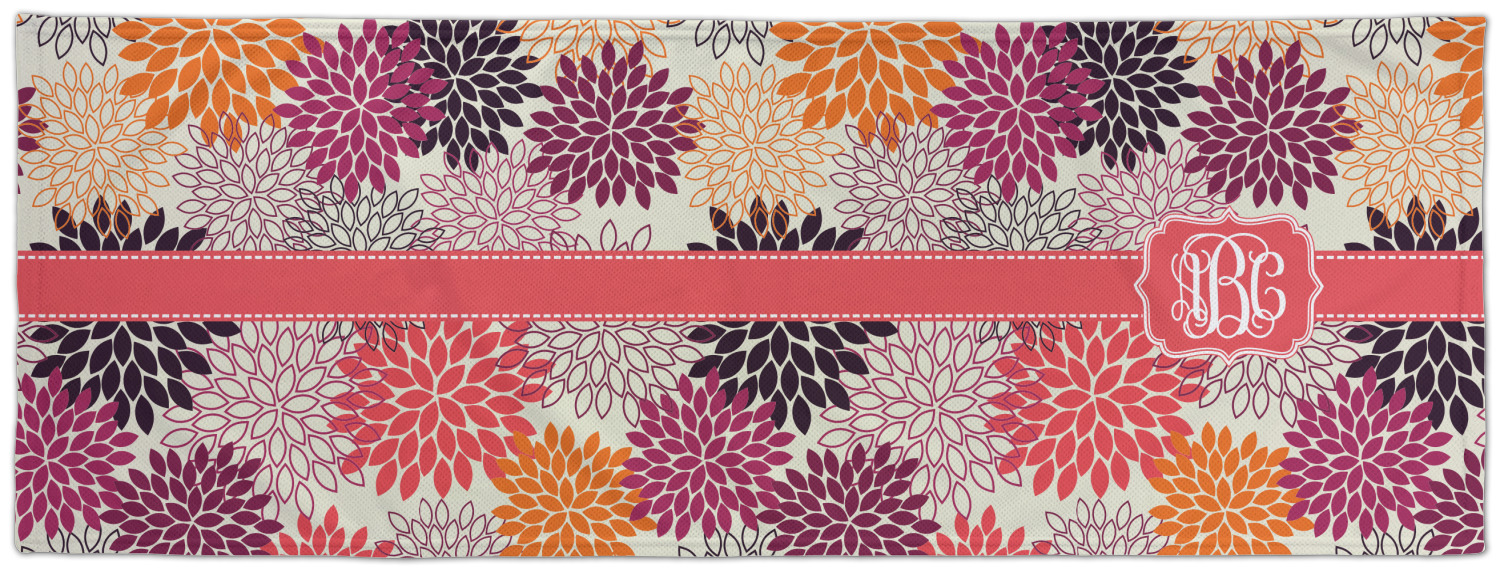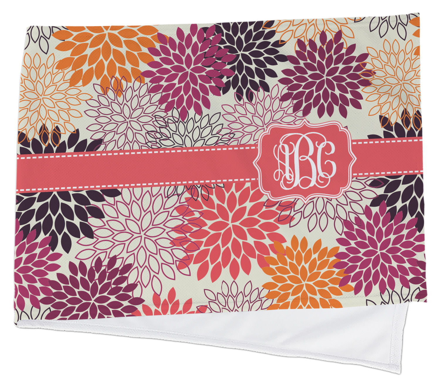 Autumn is in the air. You can feel the cool fall breeze when you see the fall foliage of red, orange, and plum mums on a tan background. The design has a classic ribbon with a decorative label in a beautiful fall color of blood orange. The personalization is an interlocking monogram, but can just as easily be a name, an initial or any text that you would like.