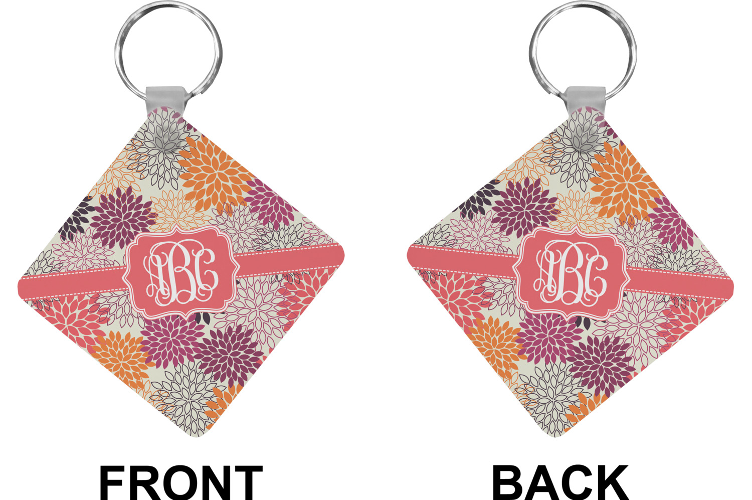 Our personalized keychains attach to the included metal, split key ring with a plastic, removable snap. Since a metal ring is included with your purchase, you have the liberty to keep your keys together on the ring, with or without your unique keychain. We offer this keychain in three different shapes: circle, heart, or diamond. We print your personalized design(s) on both sides of the key chain, and the surface has a glossy, reflective finish that only emphasizes your design. Each keychain is approximately 2.25 by 2.25 inches.