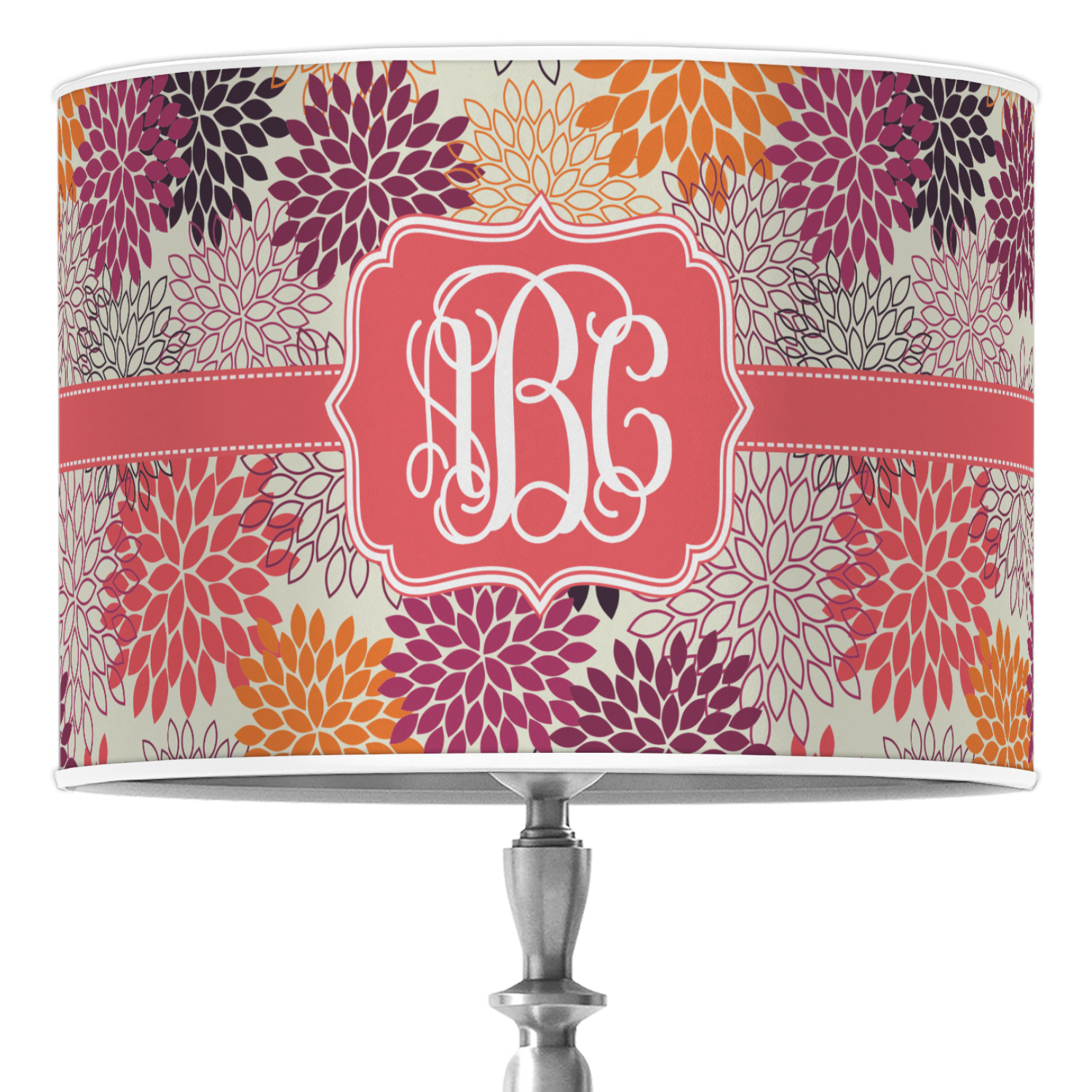 Autumn is in the air. You can feel the cool fall breeze when you see the fall foliage of red, orange, and plum mums on a tan background. The design has a classic ribbon with a decorative label in a beautiful fall color of blood orange. The personalization is an interlocking monogram, but can just as easily be a name, an initial or any text that you would like.