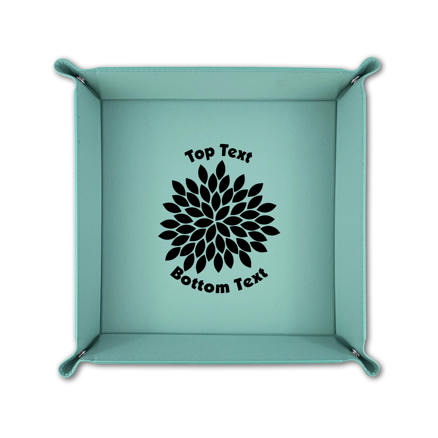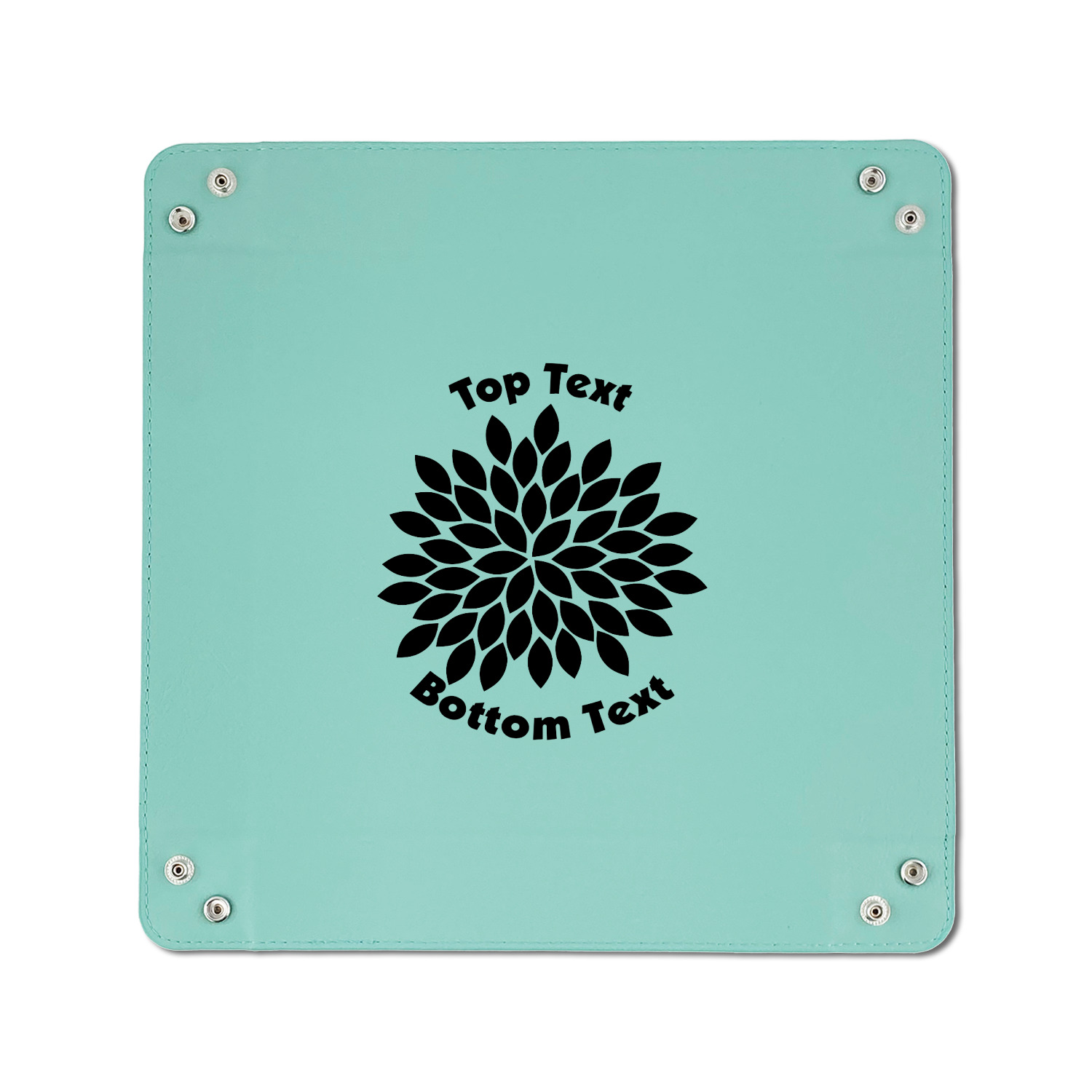 The leatherette wraps the hard board base and sides with flexible hinges to fold the sides up. The corners are secured using silver snaps. The 6in x 6 in tray measures approximately 9.5in x 9.5in when laid flat. The 9in x 9in tray measures approximately 13in x 13in when laid flat.