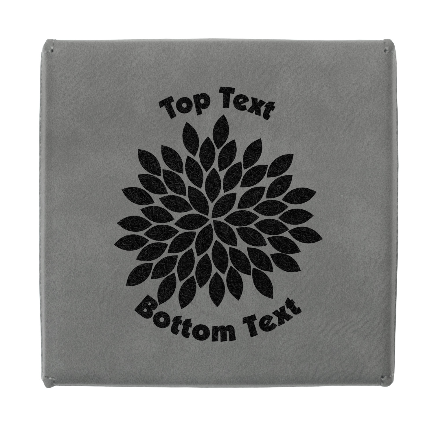 This jewelry gift box measures 3.5 inches long by 3.5 inches wide, and 1 inch deep. The box fits different sized jewelry items such as bracelets, necklaces, watches, earrings, rings and more. Engraved with a laser this high quality paper board and faux leather jewelry gift box is unique and makes any gift stand out.