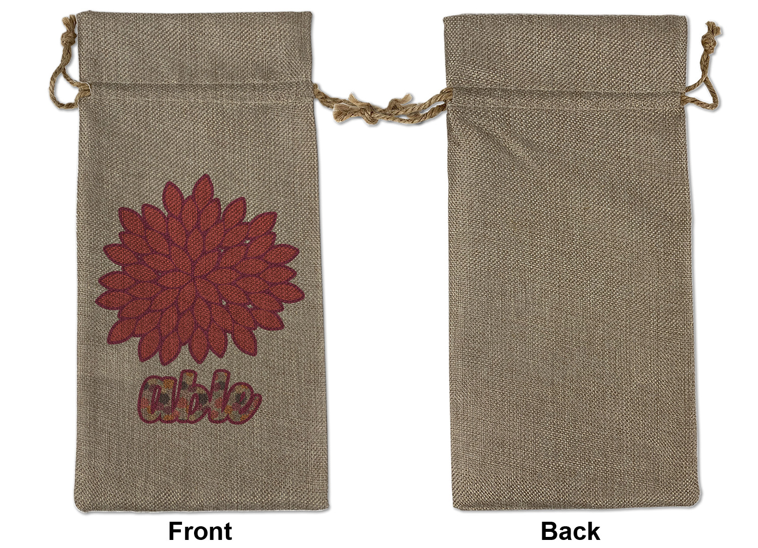 We sell our Burlap Gift Bags in 3 variant sized bags. Made with burlap polyester, each personalized bag can be secured with a twine drawstring pull. Your custom design is available to print on one side or both sides - completely up to you! The sizes of the bags measure approximately 4.5" x 6.5" for the smallest size, 6.5" x 8.0" for the medium size, and 6.5" x 13.5" for the large-sized bag.