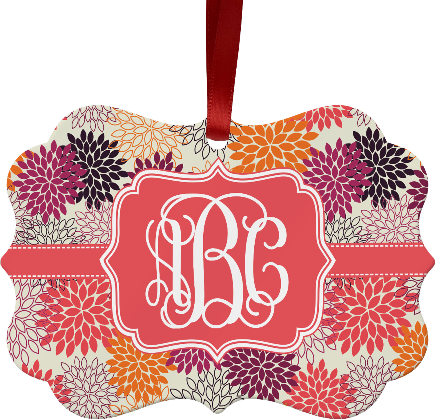 Autumn is in the air. You can feel the cool fall breeze when you see the fall foliage of red, orange, and plum mums on a tan background. The design has a classic ribbon with a decorative label in a beautiful fall color of blood orange. The personalization is an interlocking monogram, but can just as easily be a name, an initial or any text that you would like.