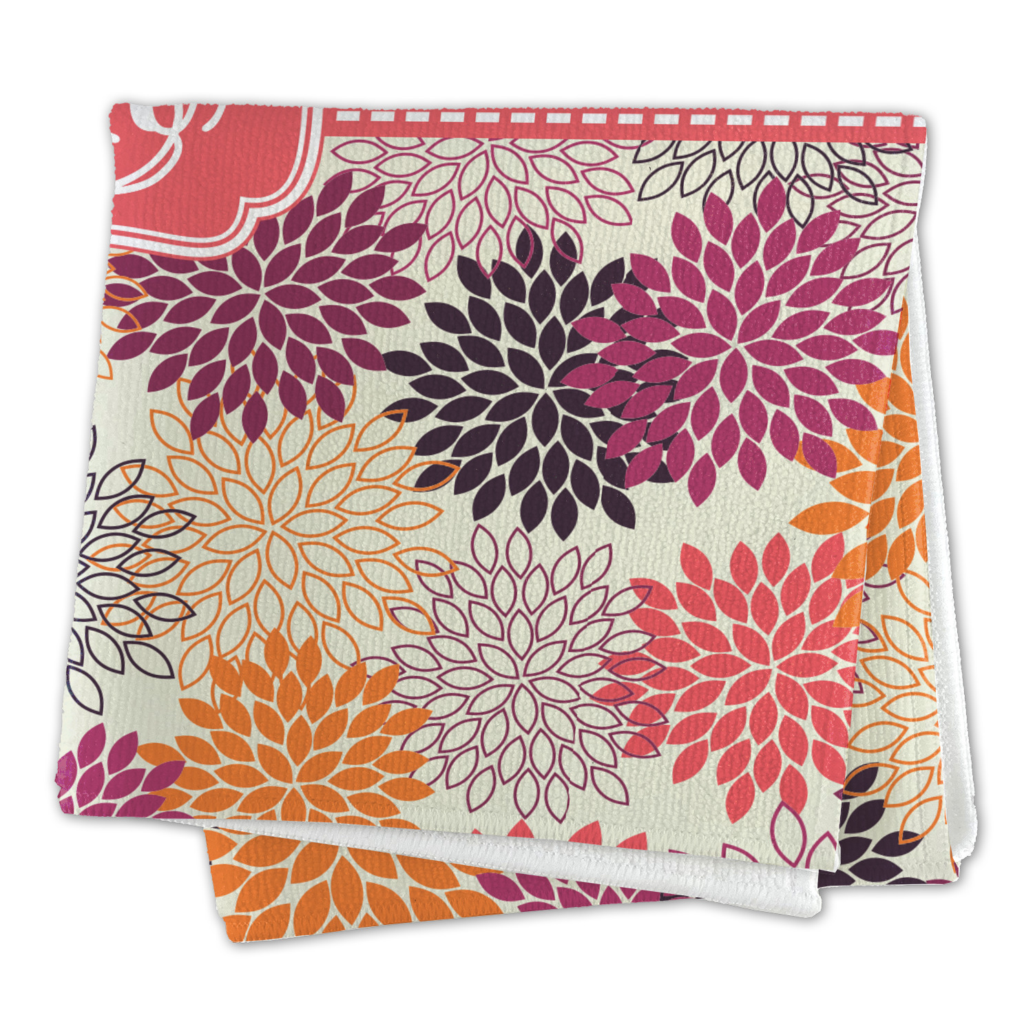 Autumn is in the air. You can feel the cool fall breeze when you see the fall foliage of red, orange, and plum mums on a tan background. The design has a classic ribbon with a decorative label in a beautiful fall color of blood orange. The personalization is an interlocking monogram, but can just as easily be a name, an initial or any text that you would like.