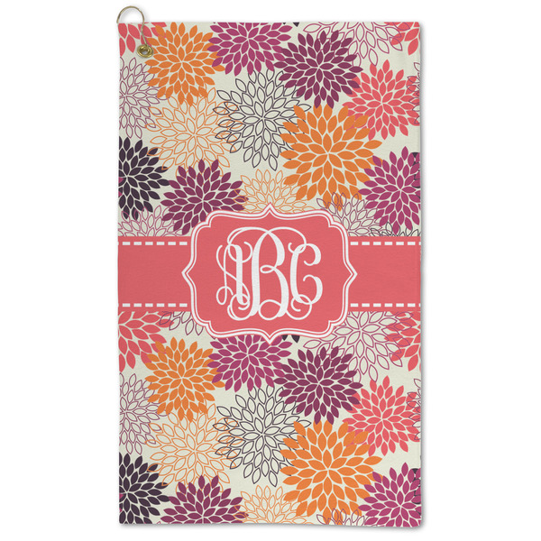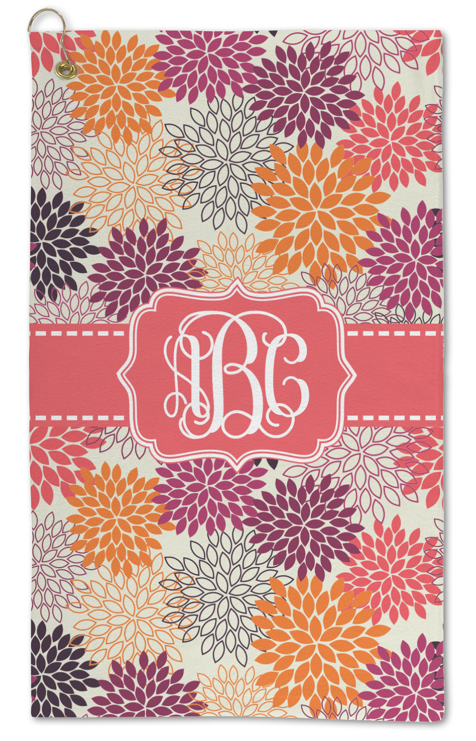 Autumn is in the air. You can feel the cool fall breeze when you see the fall foliage of red, orange, and plum mums on a tan background. The design has a classic ribbon with a decorative label in a beautiful fall color of blood orange. The personalization is an interlocking monogram, but can just as easily be a name, an initial or any text that you would like.