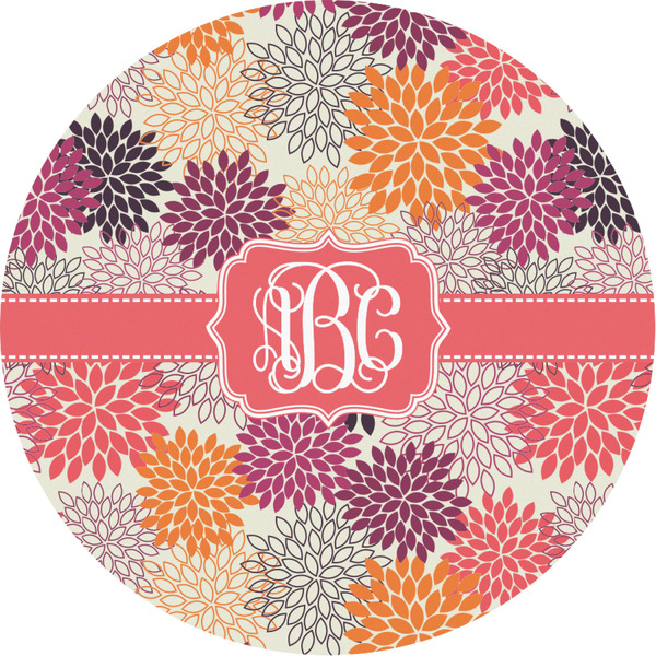 Autumn is in the air. You can feel the cool fall breeze when you see the fall foliage of red, orange, and plum mums on a tan background. The design has a classic ribbon with a decorative label in a beautiful fall color of blood orange. The personalization is an interlocking monogram, but can just as easily be a name, an initial or any text that you would like.