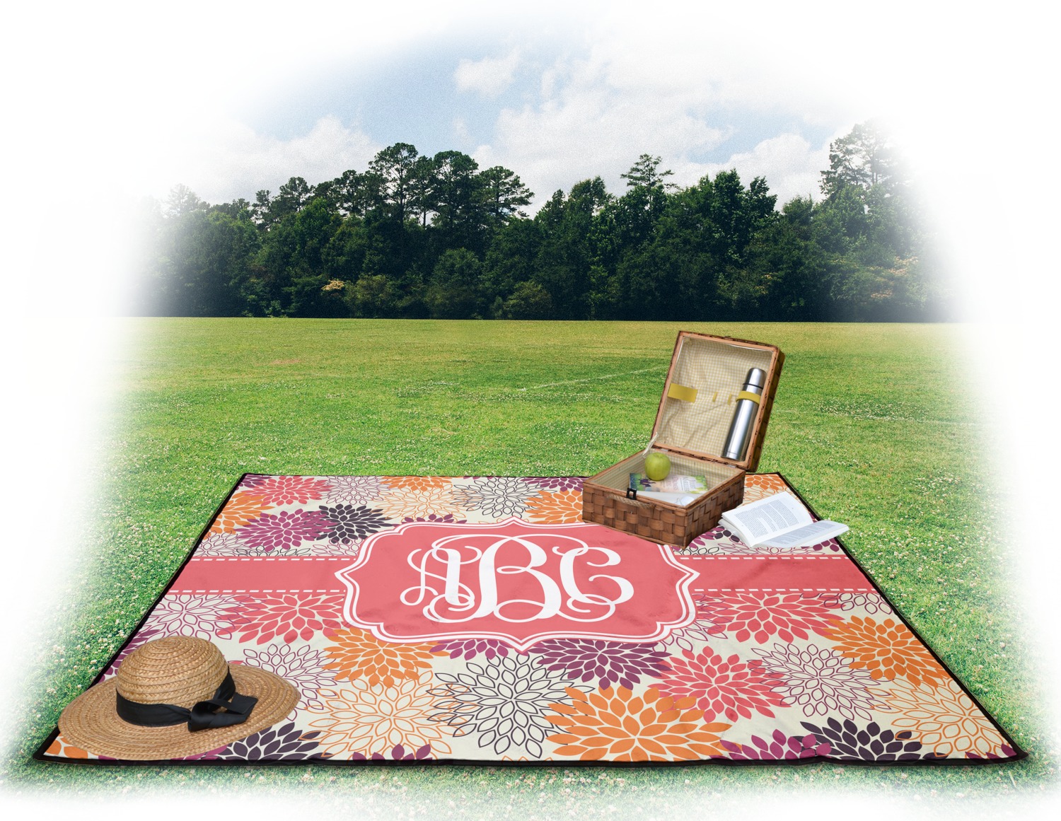 This picnic blanket is perfect for hanging out with your friends at the park or anywhere outside. The top of the blanket is made of a super soft microfiber fleece. The bottom of the blanket is made of a black material similar to a rain jacket and is water repellent as well. This will keep any wet spots on the ground from soaking through your picnic blanket. No one likes a wet blanket. The blanket measures at approximately 50" x 59" and has a nicely finished ribbon edge.