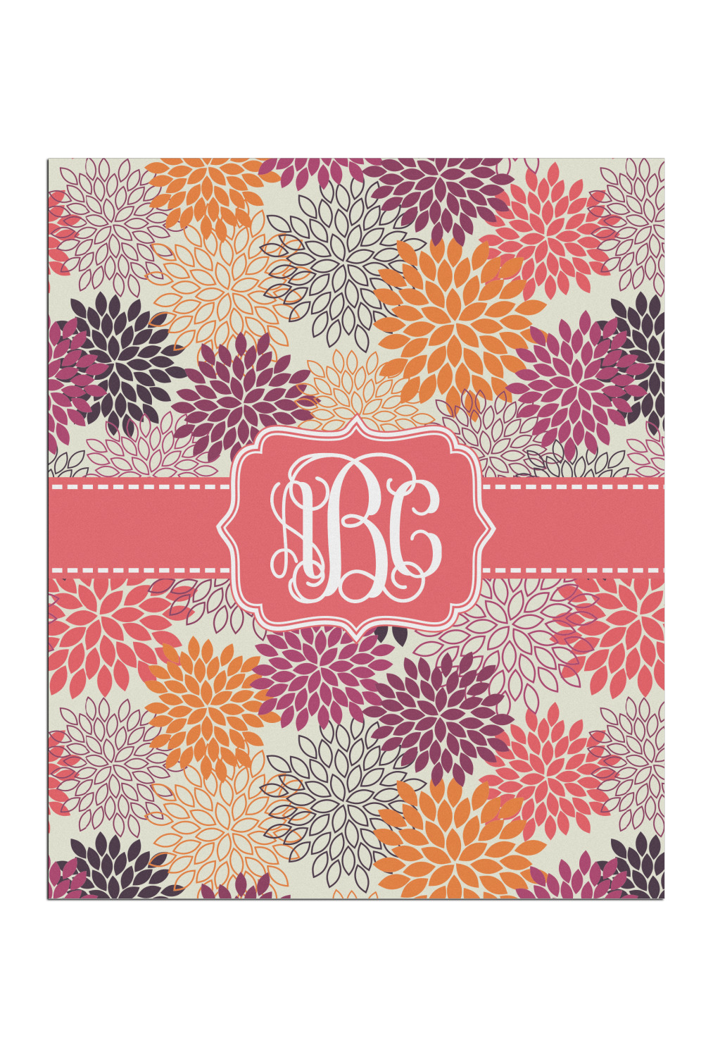 Autumn is in the air. You can feel the cool fall breeze when you see the fall foliage of red, orange, and plum mums on a tan background. The design has a classic ribbon with a decorative label in a beautiful fall color of blood orange. The personalization is an interlocking monogram, but can just as easily be a name, an initial or any text that you would like.