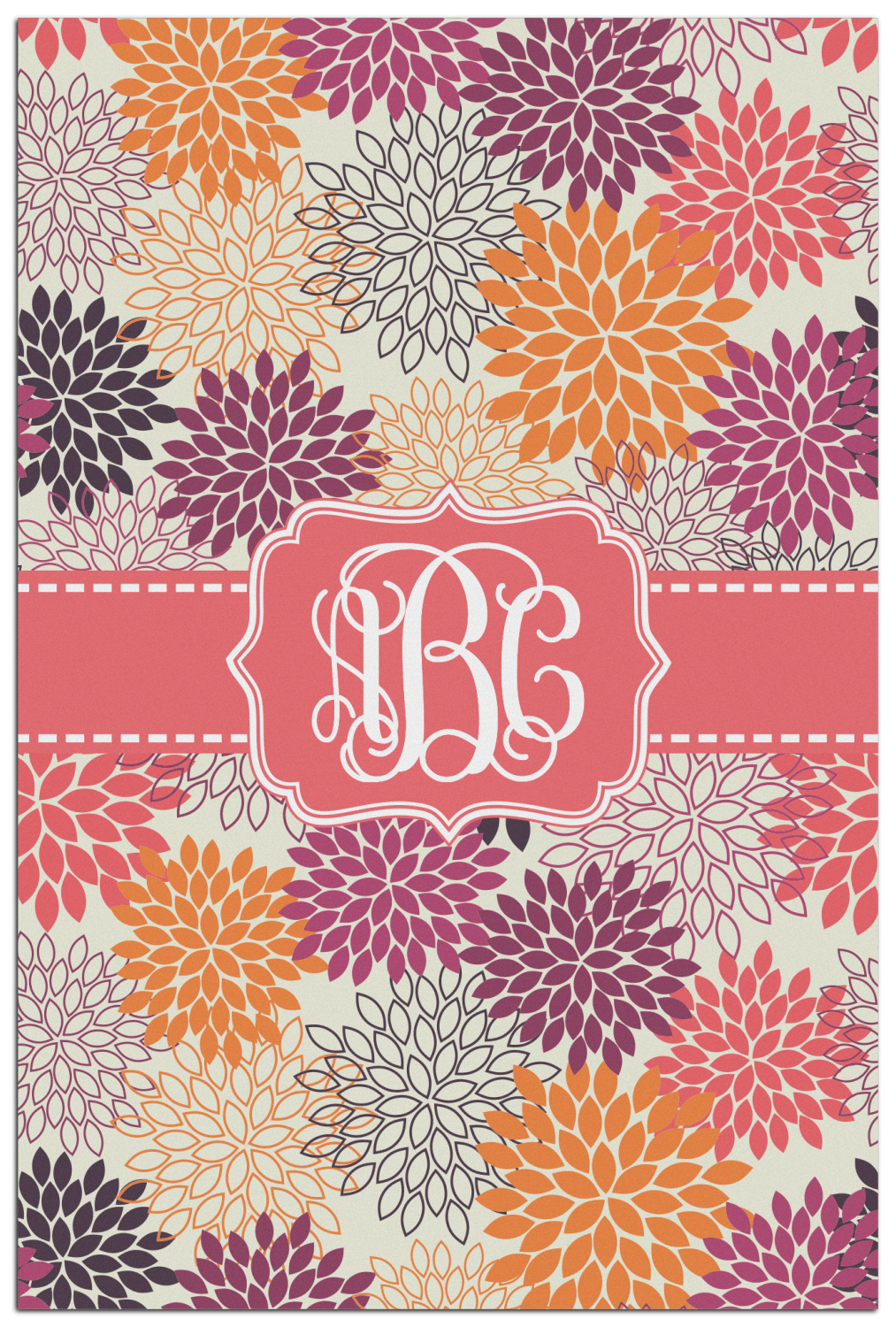 Autumn is in the air. You can feel the cool fall breeze when you see the fall foliage of red, orange, and plum mums on a tan background. The design has a classic ribbon with a decorative label in a beautiful fall color of blood orange. The personalization is an interlocking monogram, but can just as easily be a name, an initial or any text that you would like.