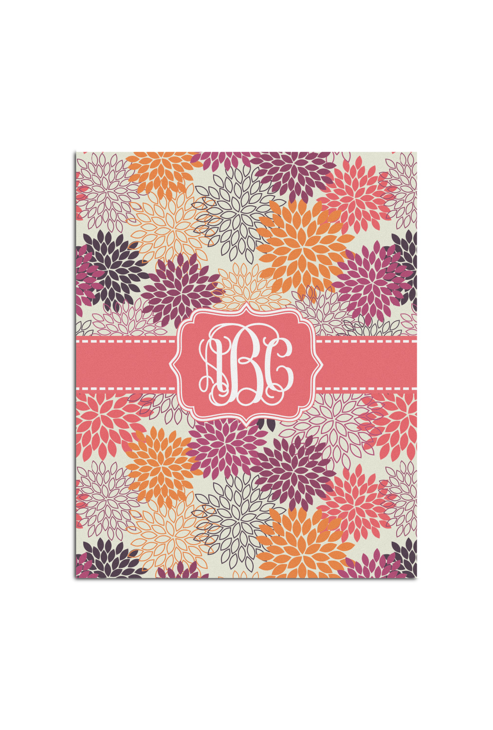 Autumn is in the air. You can feel the cool fall breeze when you see the fall foliage of red, orange, and plum mums on a tan background. The design has a classic ribbon with a decorative label in a beautiful fall color of blood orange. The personalization is an interlocking monogram, but can just as easily be a name, an initial or any text that you would like.