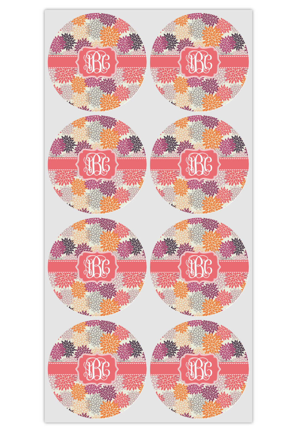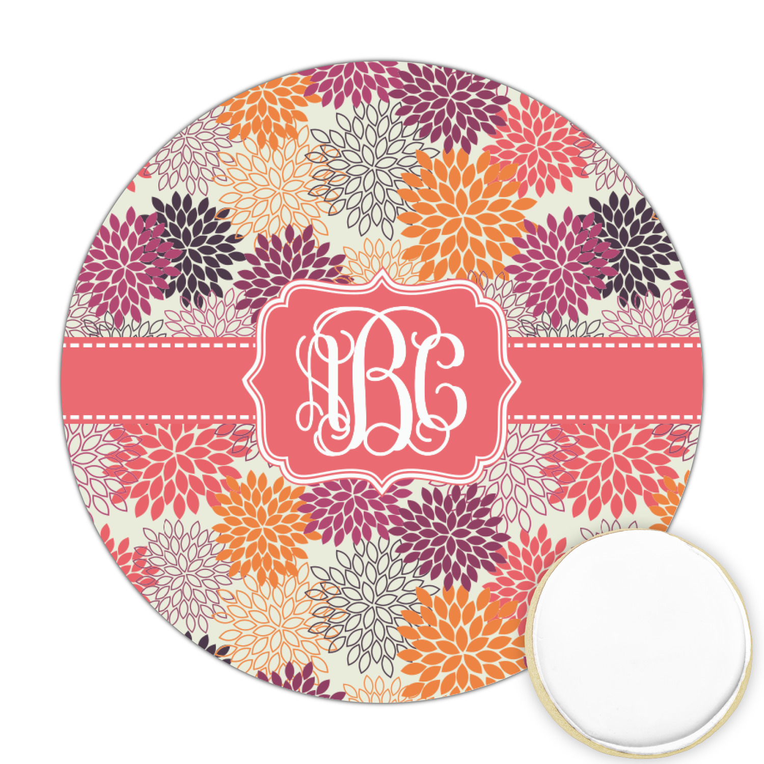 Autumn is in the air. You can feel the cool fall breeze when you see the fall foliage of red, orange, and plum mums on a tan background. The design has a classic ribbon with a decorative label in a beautiful fall color of blood orange. The personalization is an interlocking monogram, but can just as easily be a name, an initial or any text that you would like.