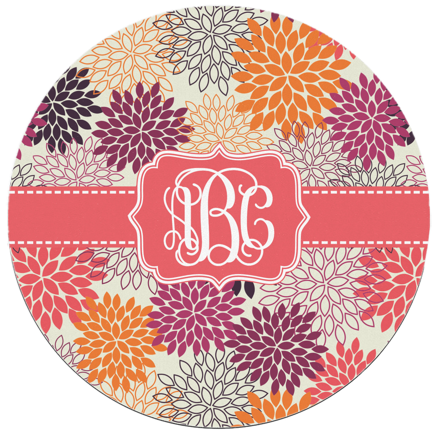 Autumn is in the air. You can feel the cool fall breeze when you see the fall foliage of red, orange, and plum mums on a tan background. The design has a classic ribbon with a decorative label in a beautiful fall color of blood orange. The personalization is an interlocking monogram, but can just as easily be a name, an initial or any text that you would like.