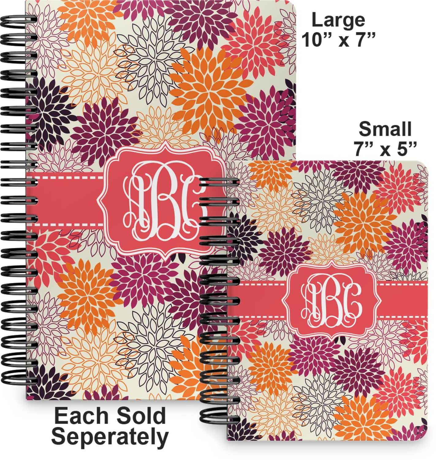 This spiral journal is available in two sizes. The first size is more suitable for a tote or purse and measures at 7" x 5". The second option is a bit larger, at 10" x 7", and is a better fit for a briefcase or backpack.