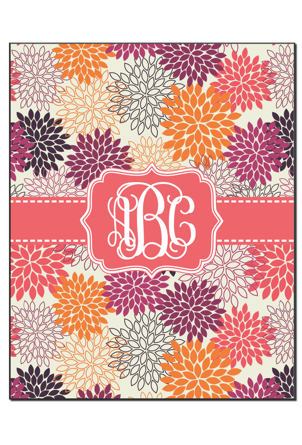 Autumn is in the air. You can feel the cool fall breeze when you see the fall foliage of red, orange, and plum mums on a tan background. The design has a classic ribbon with a decorative label in a beautiful fall color of blood orange. The personalization is an interlocking monogram, but can just as easily be a name, an initial or any text that you would like.