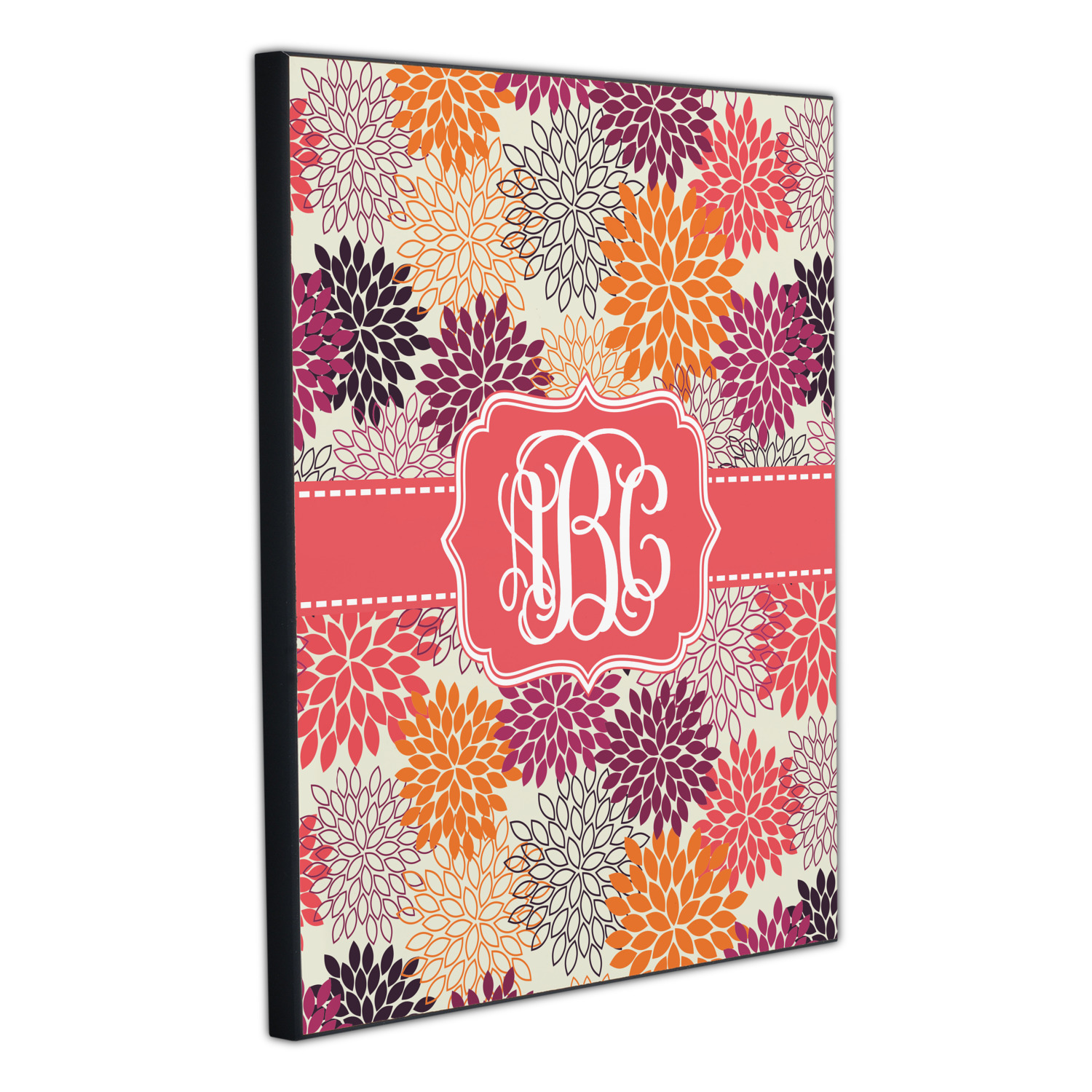 Autumn is in the air. You can feel the cool fall breeze when you see the fall foliage of red, orange, and plum mums on a tan background. The design has a classic ribbon with a decorative label in a beautiful fall color of blood orange. The personalization is an interlocking monogram, but can just as easily be a name, an initial or any text that you would like.