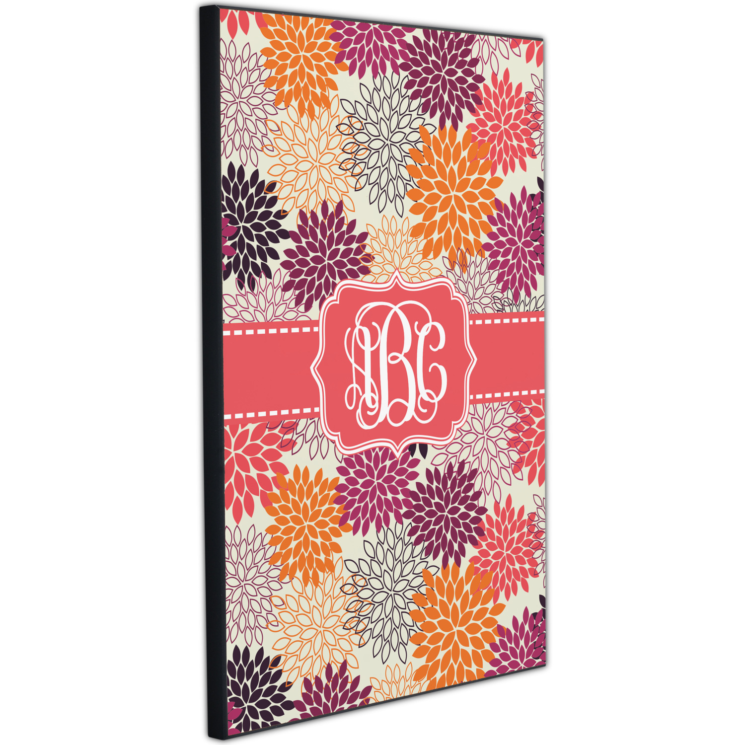 Autumn is in the air. You can feel the cool fall breeze when you see the fall foliage of red, orange, and plum mums on a tan background. The design has a classic ribbon with a decorative label in a beautiful fall color of blood orange. The personalization is an interlocking monogram, but can just as easily be a name, an initial or any text that you would like.