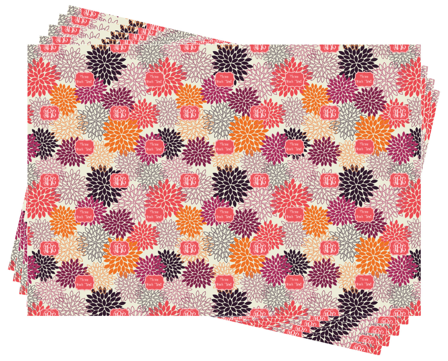 Autumn is in the air. You can feel the cool fall breeze when you see the fall foliage of red, orange, and plum mums on a tan background. The design has a classic ribbon with a decorative label in a beautiful fall color of blood orange. The personalization is an interlocking monogram, but can just as easily be a name, an initial or any text that you would like.