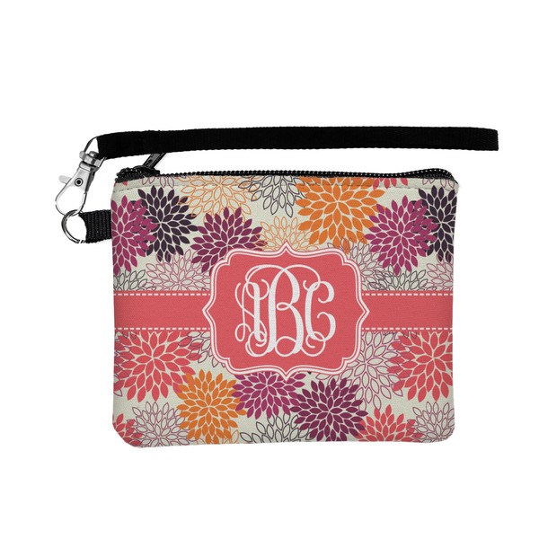 Autumn is in the air. You can feel the cool fall breeze when you see the fall foliage of red, orange, and plum mums on a tan background. The design has a classic ribbon with a decorative label in a beautiful fall color of blood orange. The personalization is an interlocking monogram, but can just as easily be a name, an initial or any text that you would like.