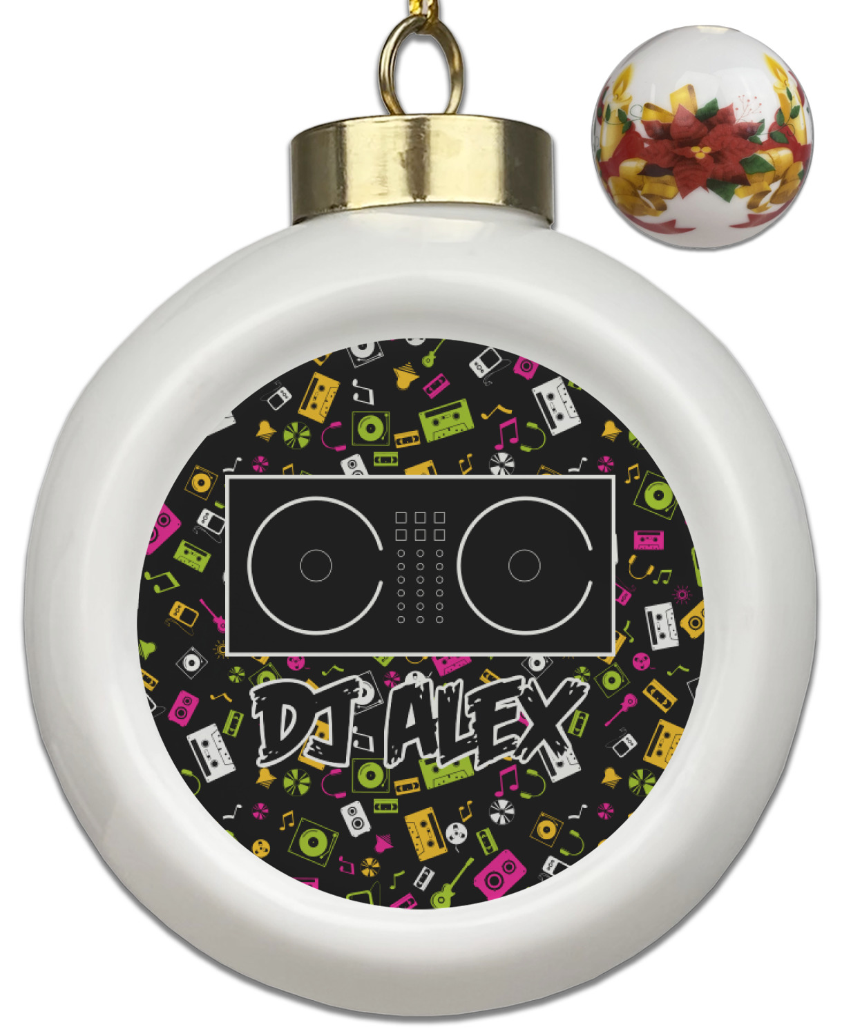 Our Christmas ornaments are a unique ceramic ball shape with a twist as it has a flat face to display your custom design! Select from one of our two design types - Christmas Tree or Poinsettia Garland - to adorn the curved back of your personal design. Each ornament measures 3H x 2.5W x 2D accompanied with a gold string accent for finishing touches to hang on your beautiful Christmas tree!