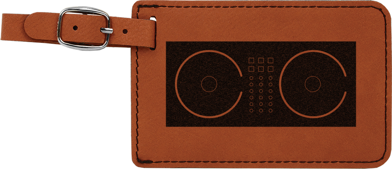 This luggage tag will surely be able to get you started in having all the right tools for traveling. It is made of a beautiful leatherette material that is a nice shade of cognac brown. The front of the tag is where your design goes. The sturdy black stitching gives your design an extra pop and gives the tag extra durability. The back of the tag has a clear vinyl window where you can slip in your address card. The tag comes with a great little buckle strap that you can easily use to clip to your suitcase. The tag itself measures at approximately 5.5"W x 4.25"H.
