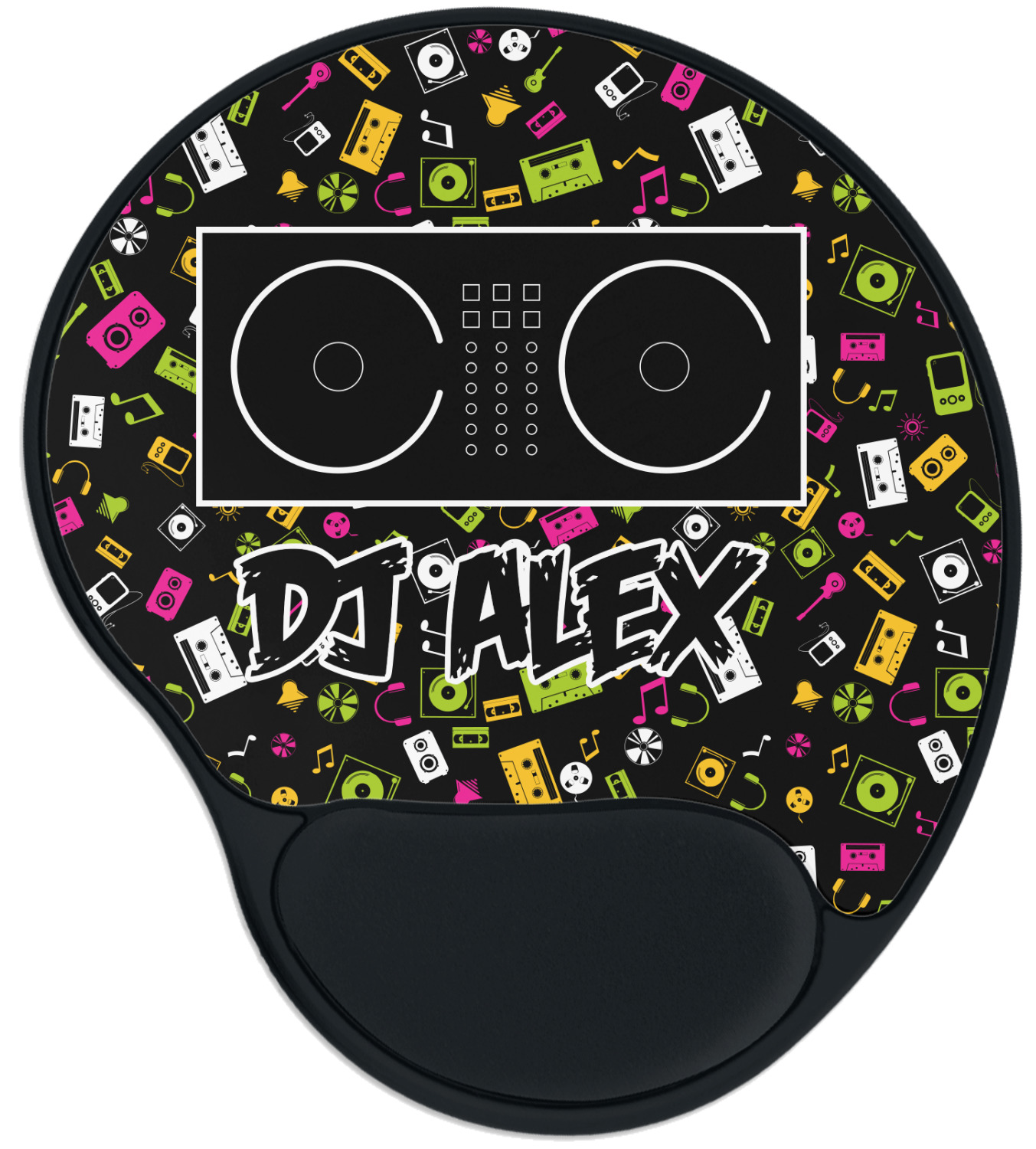 The top of these personalized mouse pads are made from a polyester, while the underside is plastic. The back of these mouse mats include rubber feet to prevent any slippage while in use. A padded wrist support, made from plush memory foam, occupies the bottom section of these computer mouse pads. Your customized design is printed onto the face of this mat, with the remaining sides and support piece colored in black. The mat itself is rounded and measures at 10.25" x 9.13".