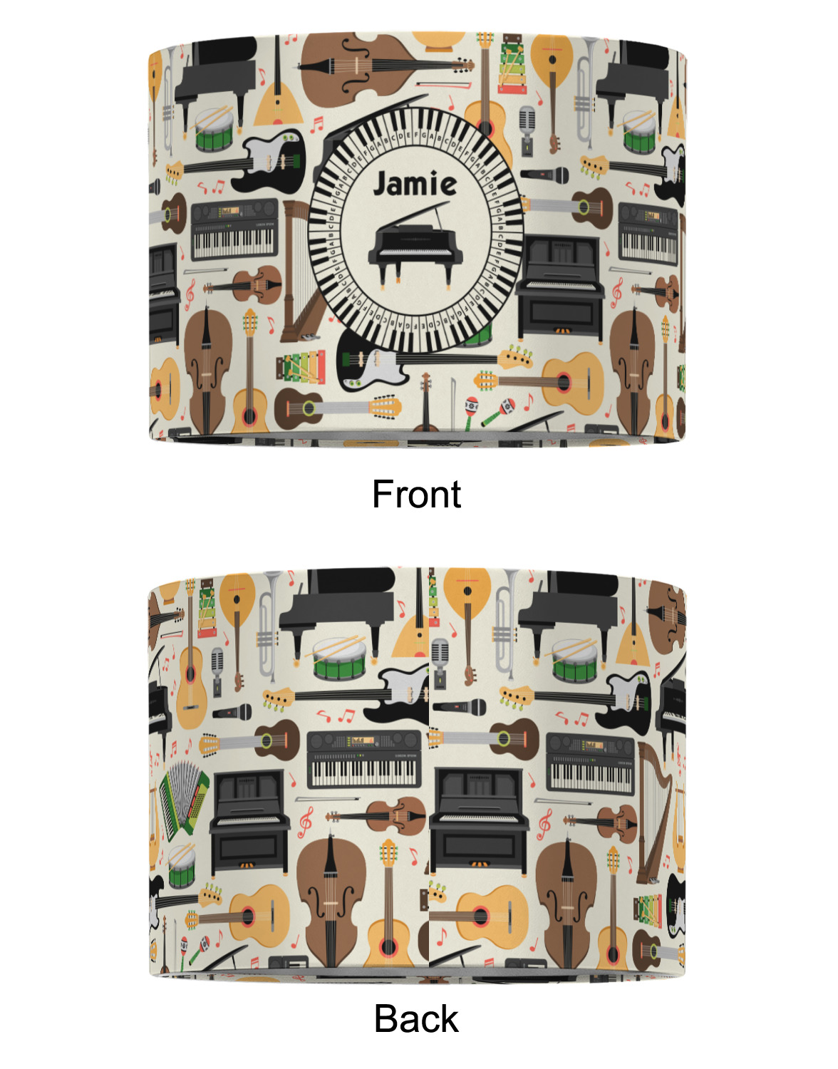 The background in the design is part of a set of music backgrounds - so it can easily be swapped out for a different background. We have a number of other musical frames / labels that you can also choose from. For the center graphic, all the musical instruments are in our system, so you can easily switch out the instrument.