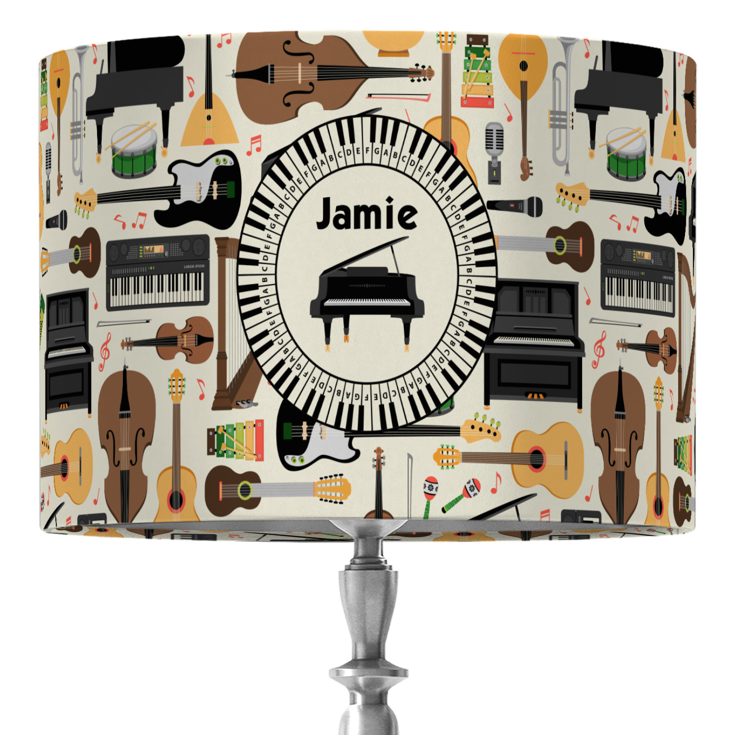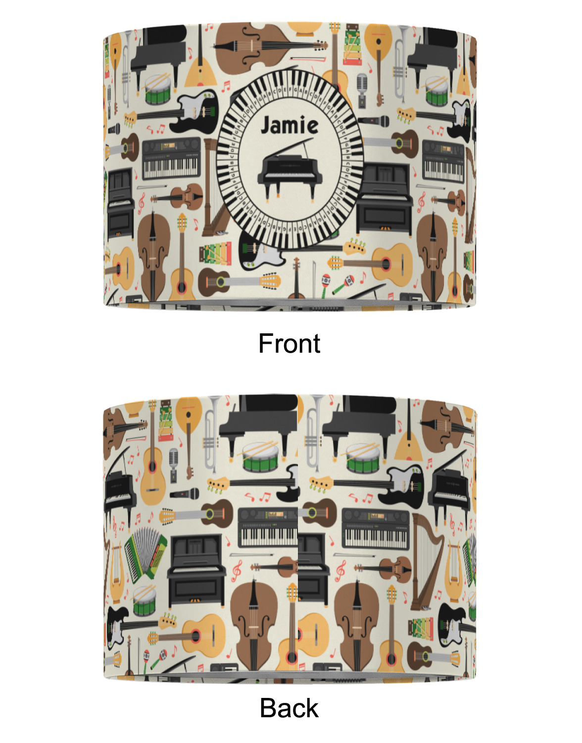 The background in the design is part of a set of music backgrounds - so it can easily be swapped out for a different background. We have a number of other musical frames / labels that you can also choose from. For the center graphic, all the musical instruments are in our system, so you can easily switch out the instrument.