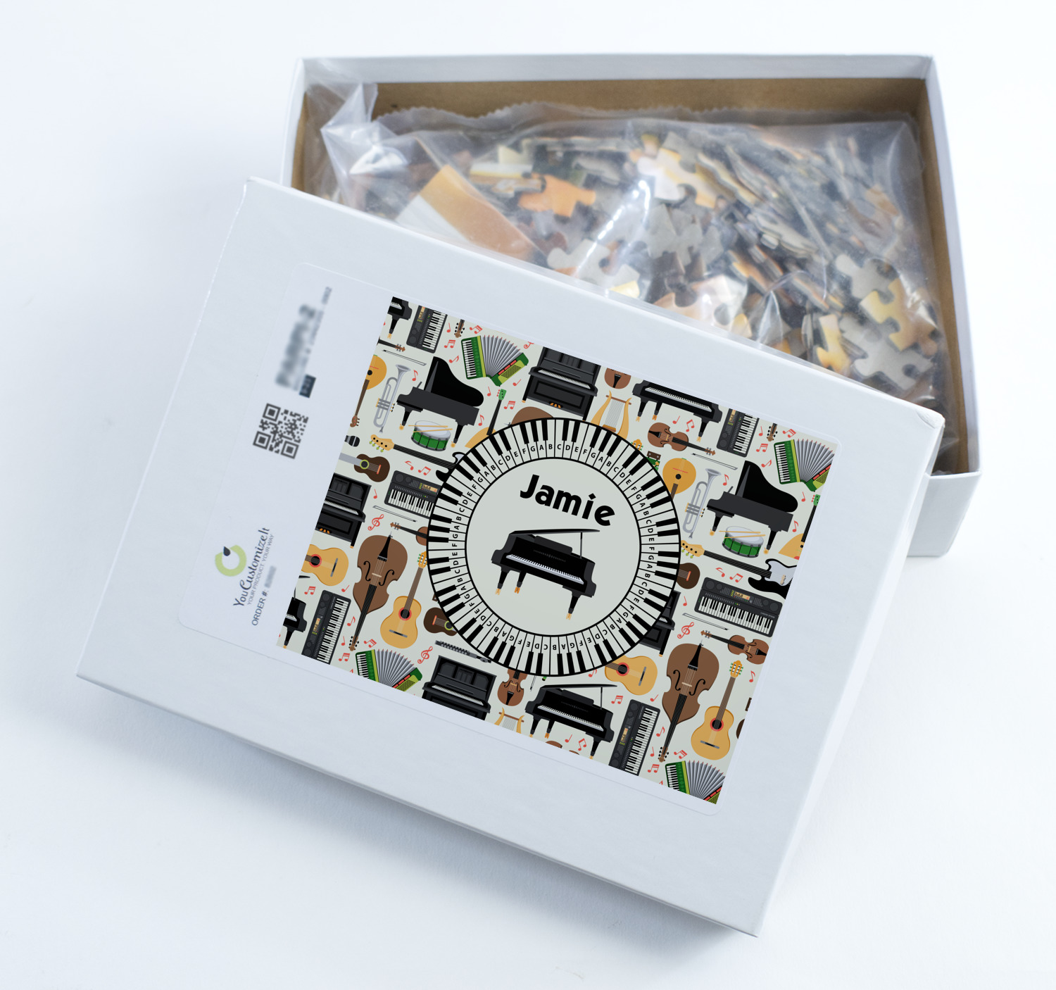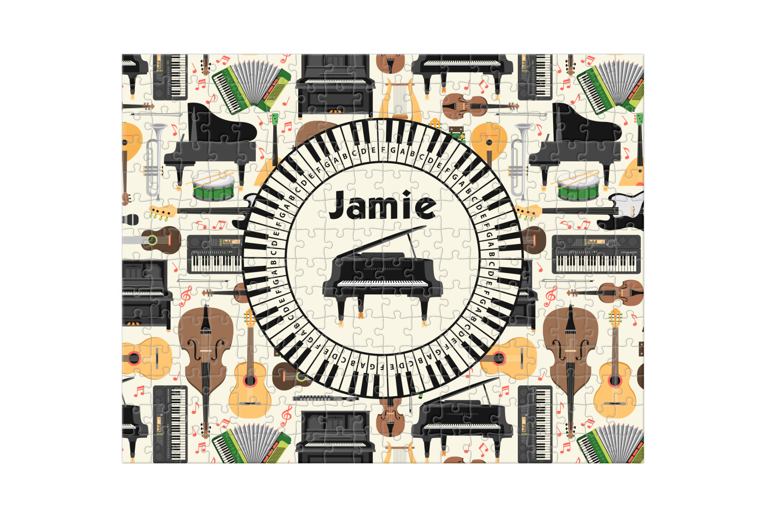 Depending on the look you are trying to achieve, you can add; a thematic pattern or background, with a photo in a frame and text or personalization to your puzzle. Basically if you can imagine it, you can design it!