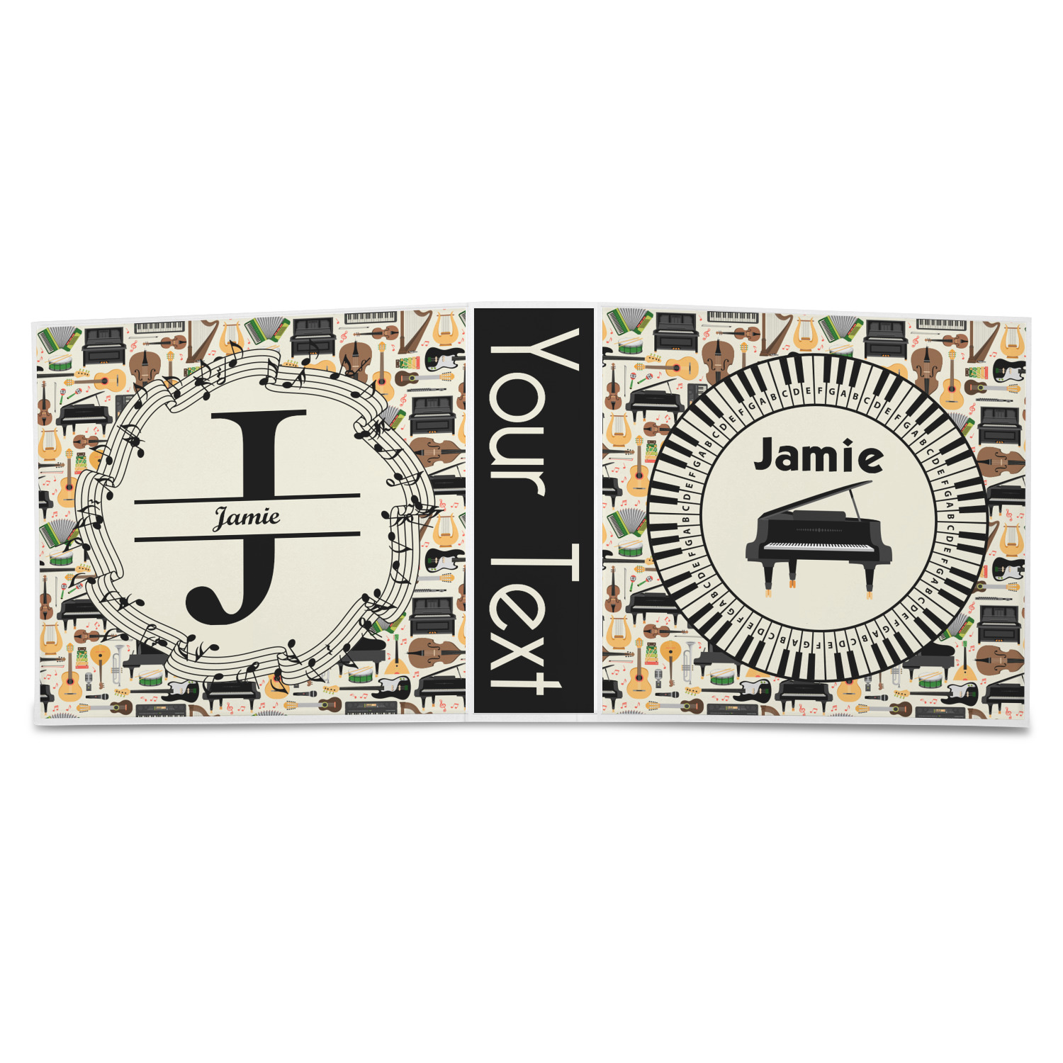 This musical instruments design is very elegant. The background is comprised of musical instrument and musical notes. Some of the musical instruments include pianos, guitars, harps, keyboard, flutes etc. We used our classic frame / label with graphic & name for our foreground. We chose a fun musical keys frame/label and for our graphic we chose the baby grand piano. We personalized it the a name using our "Touch of Class" font.