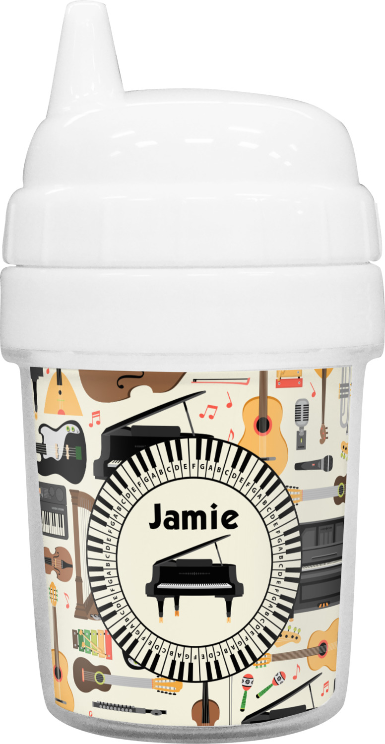 Our toddler cups are free of BPA, and have a twist-open lid so that you can easily fill and clean these cups for your young ones. Each cup also comes with a sippy nozzle to reduce spills. We offer these custom sippy cups in two different sizes; we have a baby sippy cup that holds 5 ounces, and a toddler sippy cup that holds 10 ounces. Your customization is printed on a premium glossy media insert that is placed within these toddler drinking cups.