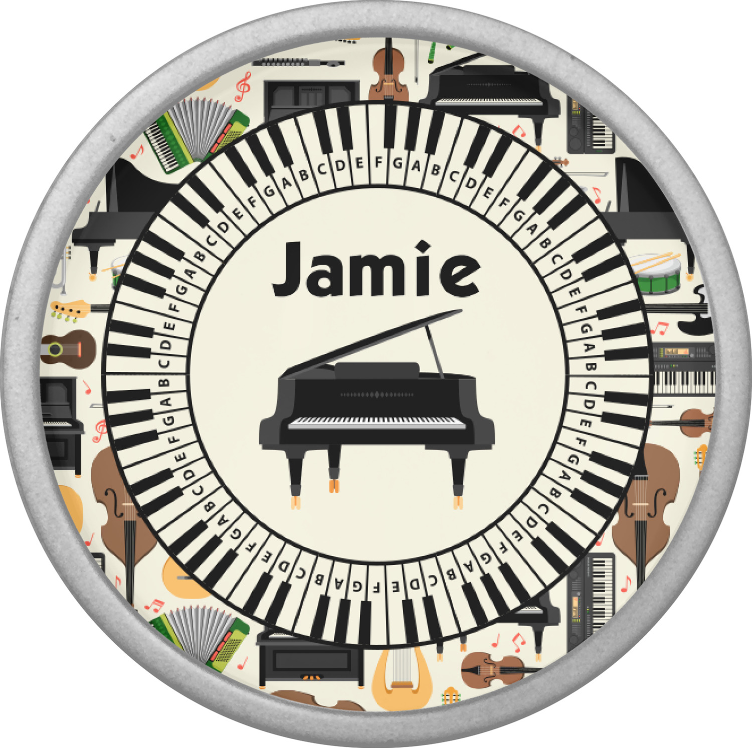 The background in the design is part of a set of music backgrounds - so it can easily be swapped out for a different background. We have a number of other musical frames / labels that you can also choose from. For the center graphic, all the musical instruments are in our system, so you can easily switch out the instrument.