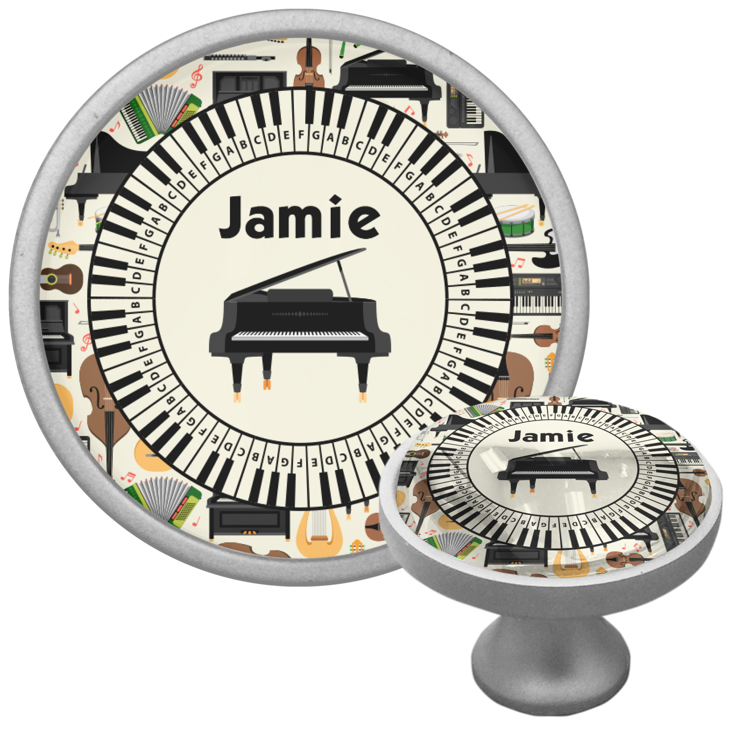 We sell these cabinet pulls in two different colors to better match your room's color scheme. We offer an oil-rubbed bronze base that is black in color, and a satin nickel option, which has a silver color. Your design is displayed across a high gloss vinyl insert that is placed on top of these cabinet handles. We then place a 1 inch thick glass cabochon atop the design, which seals the cabinet knob and makes the colors of your customization stand out. These custom cabinet knobs are approximately 1.3 inches in diameter. Your purchase includes a 1 inch screw that can be used to mount the knob to any cabinet in your home.