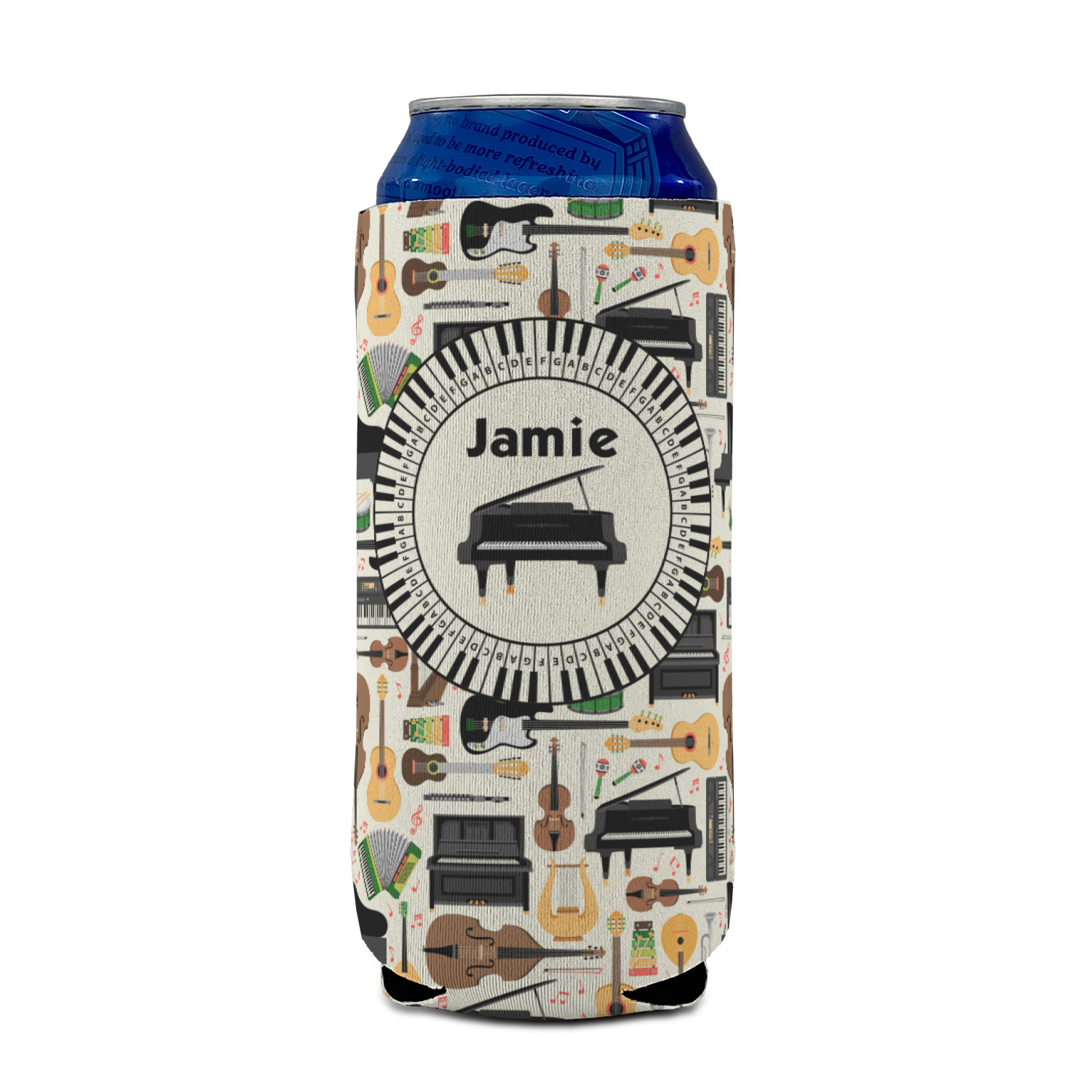 The background in the design is part of a set of music backgrounds - so it can easily be swapped out for a different background. We have a number of other musical frames / labels that you can also choose from. For the center graphic, all the musical instruments are in our system, so you can easily switch out the instrument.