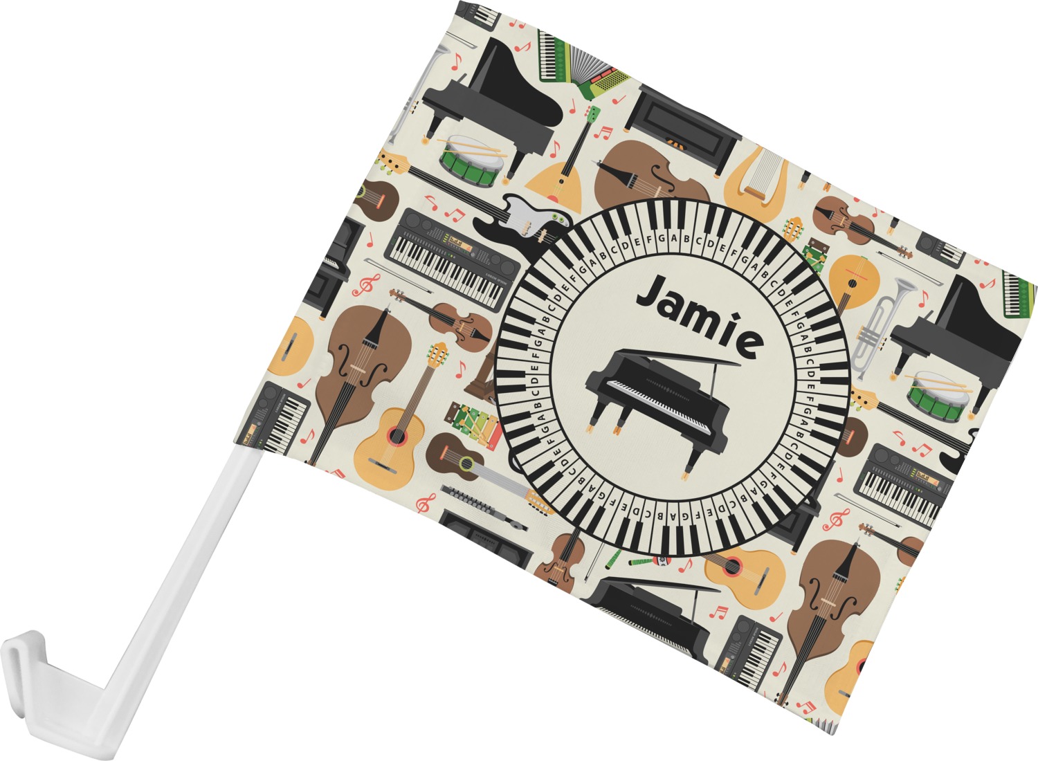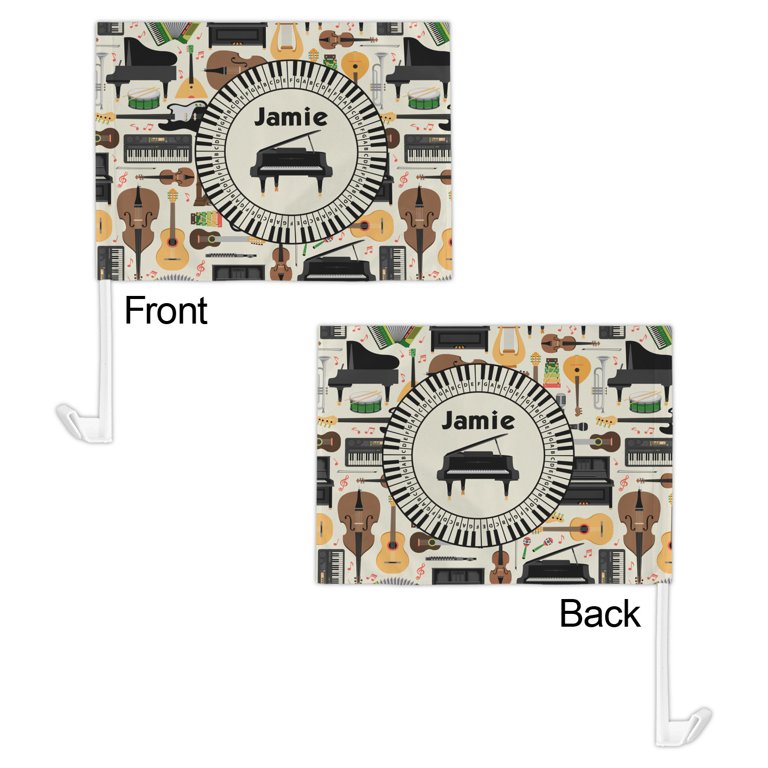 Our personalized flags are made from a durable, yet lightweight cloth that will proudly bear your logo or design of choice, while withstanding the outside elements. We have two size options - 8" x 11" and 11" x 15". Both come with a flag pole which includes a clip that secures the pole to the side window, whether it is rolled up or down. The flags are printed on both sides to display your design from all directions.