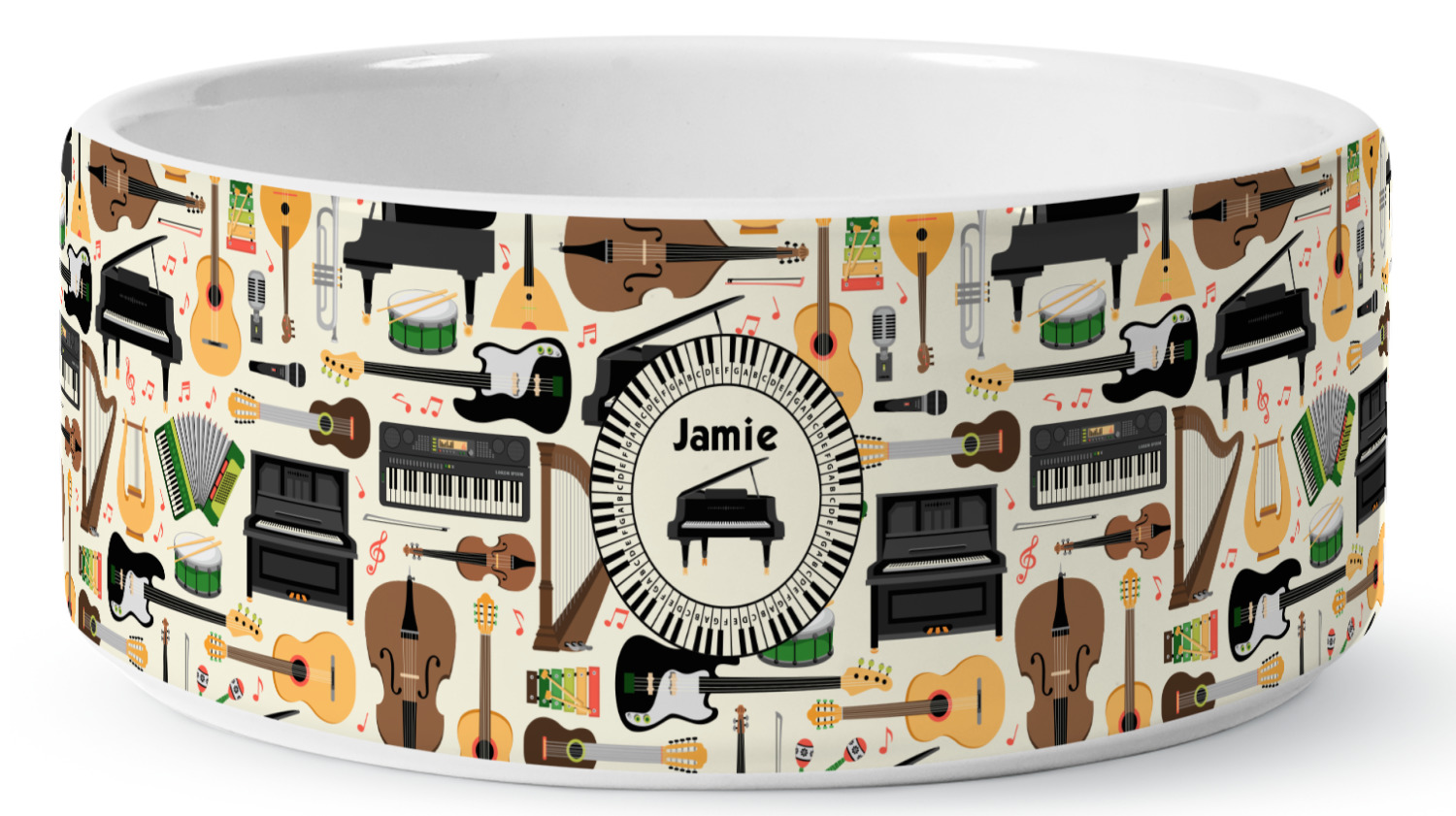 We carry these custom dog bowls in two available sizes: medium and large.The medium is 6 inches in diameter and 2.5 inches tall, and can therefore suit pets who eat up to 2.5 cups of food per meal. The large pet bowl is 7 inches in diameter and 3 inches tall, and suits pets who require up to 4.5 cups of food per meal.