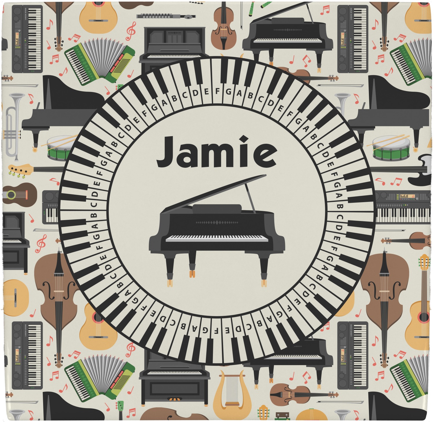 This musical instruments design is very elegant. The background is comprised of musical instrument and musical notes. Some of the musical instruments include pianos, guitars, harps, keyboard, flutes etc. We used our classic frame / label with graphic & name for our foreground. We chose a fun musical keys frame/label and for our graphic we chose the baby grand piano. We personalized it the a name using our "Touch of Class" font.