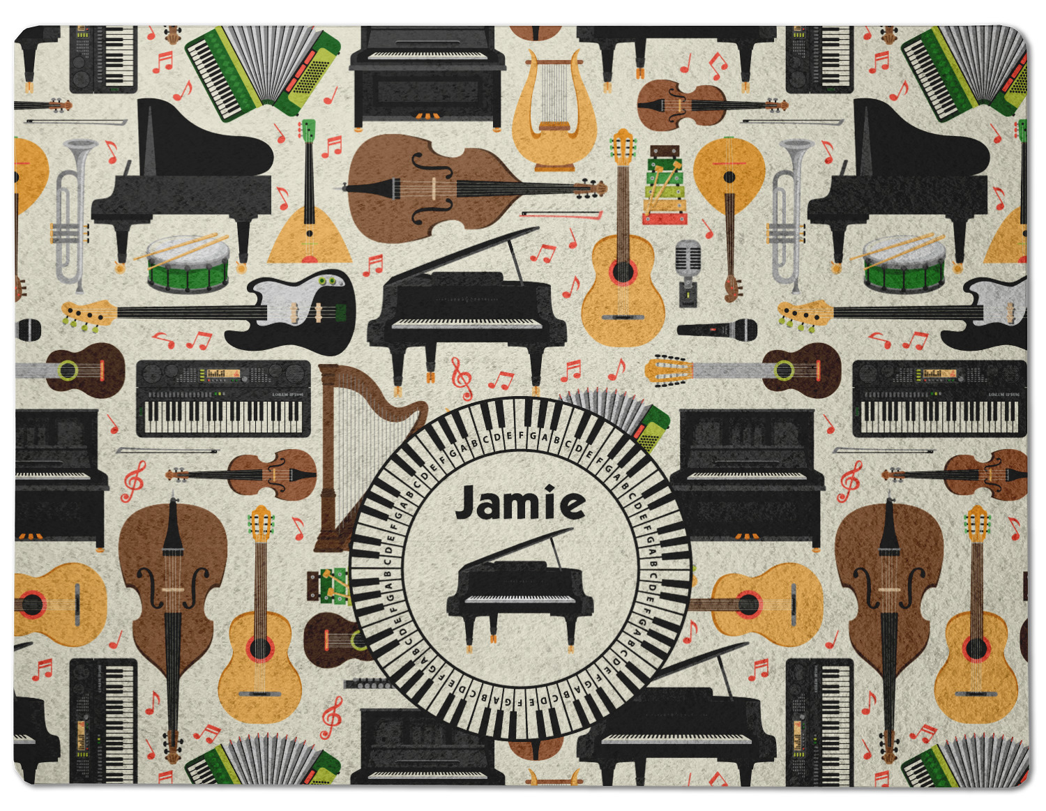 The background in the design is part of a set of music backgrounds - so it can easily be swapped out for a different background. We have a number of other musical frames / labels that you can also choose from. For the center graphic, all the musical instruments are in our system, so you can easily switch out the instrument.