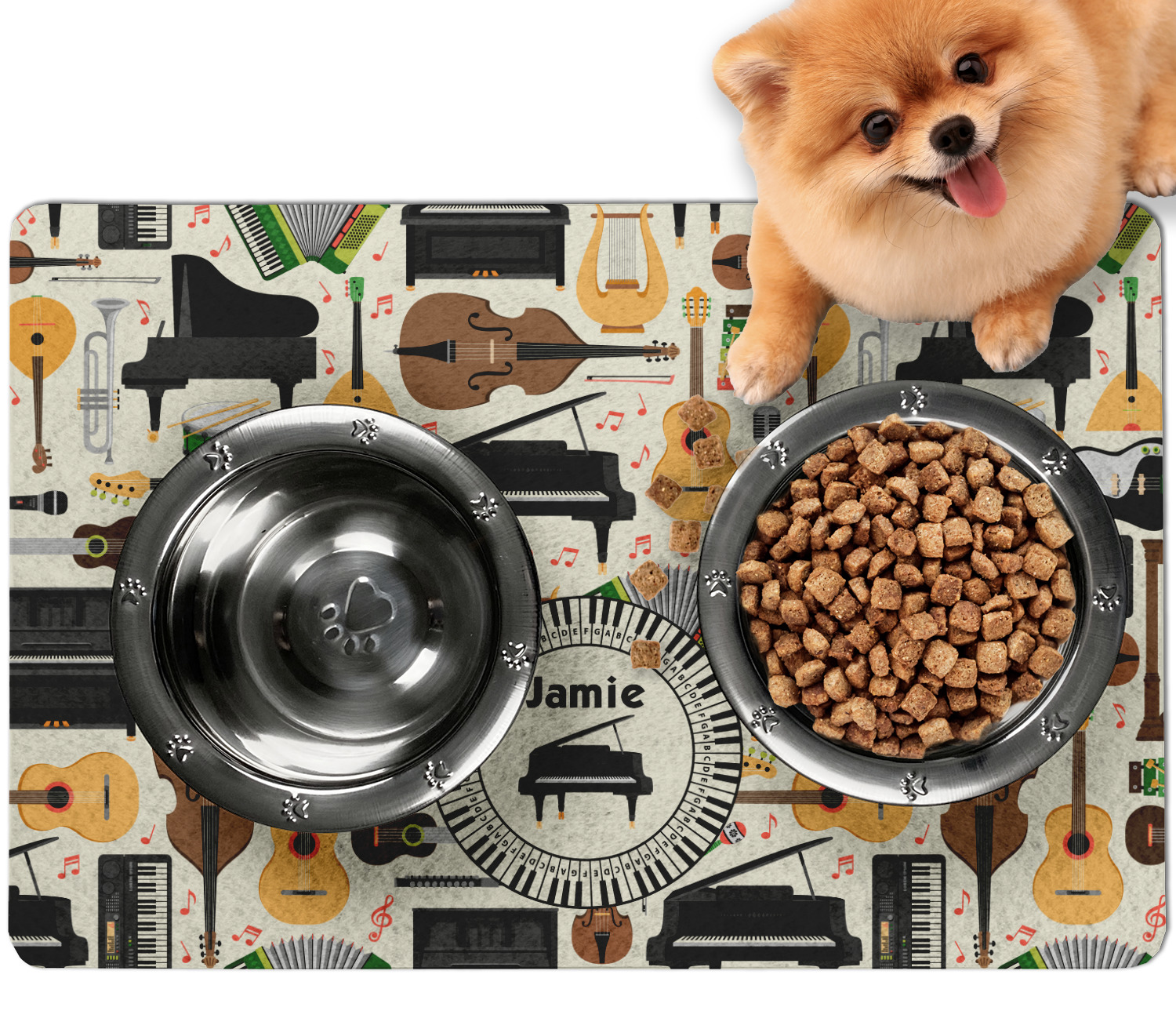 Frustrated with the mess your pets make during mealtime? Personalize a multi-functional dog food mat that prevents spills from reaching your floors, while also incorporating some cute decor to your dog's eating area!