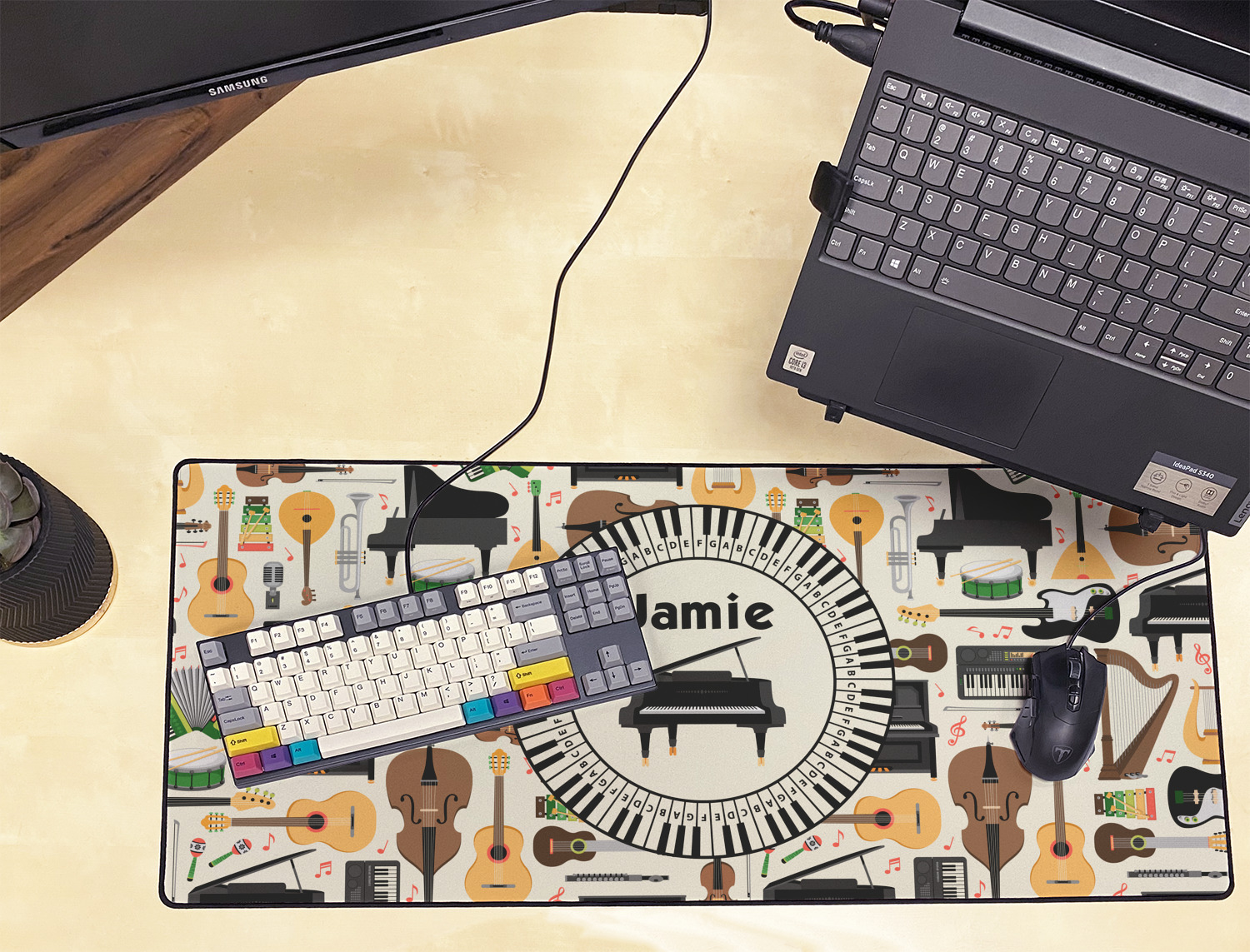 The background in the design is part of a set of music backgrounds - so it can easily be swapped out for a different background. We have a number of other musical frames / labels that you can also choose from. For the center graphic, all the musical instruments are in our system, so you can easily switch out the instrument.