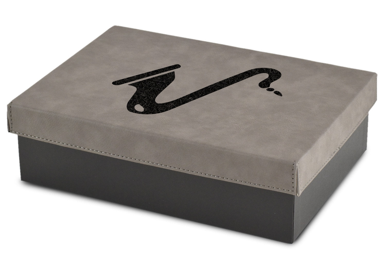 These gift boxes are available in 3 different sizes to accommodate various sized gifts. Available in gray as a neutral color for any occasion as well as to showcase your design boldly. Engraved with a laser this high quality paper board and faux leather gift box is unique and makes any gift stand out.