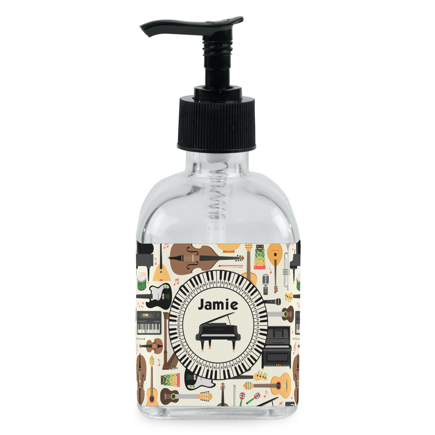 Crafted from a high-quality glass, these soap dispensers and lotion dispensers are durable and robust, while still looking elegant. They are sold with black pumps. Each soap dispenser pump measures at 6.5 by 2.25 inches. On these soap pumps, we display your customized design on a personalized vinyl adhesive on three sides. That way, you can judge how much liquid is in the bottles from the back.