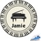 This musical instruments design is very elegant. The background is comprised of musical instrument and musical notes. Some of the musical instruments include pianos, guitars, harps, keyboard, flutes etc. We used our classic frame / label with graphic & name for our foreground. We chose a fun musical keys frame/label and for our graphic we chose the baby grand piano. We personalized it the a name using our "Touch of Class" font.