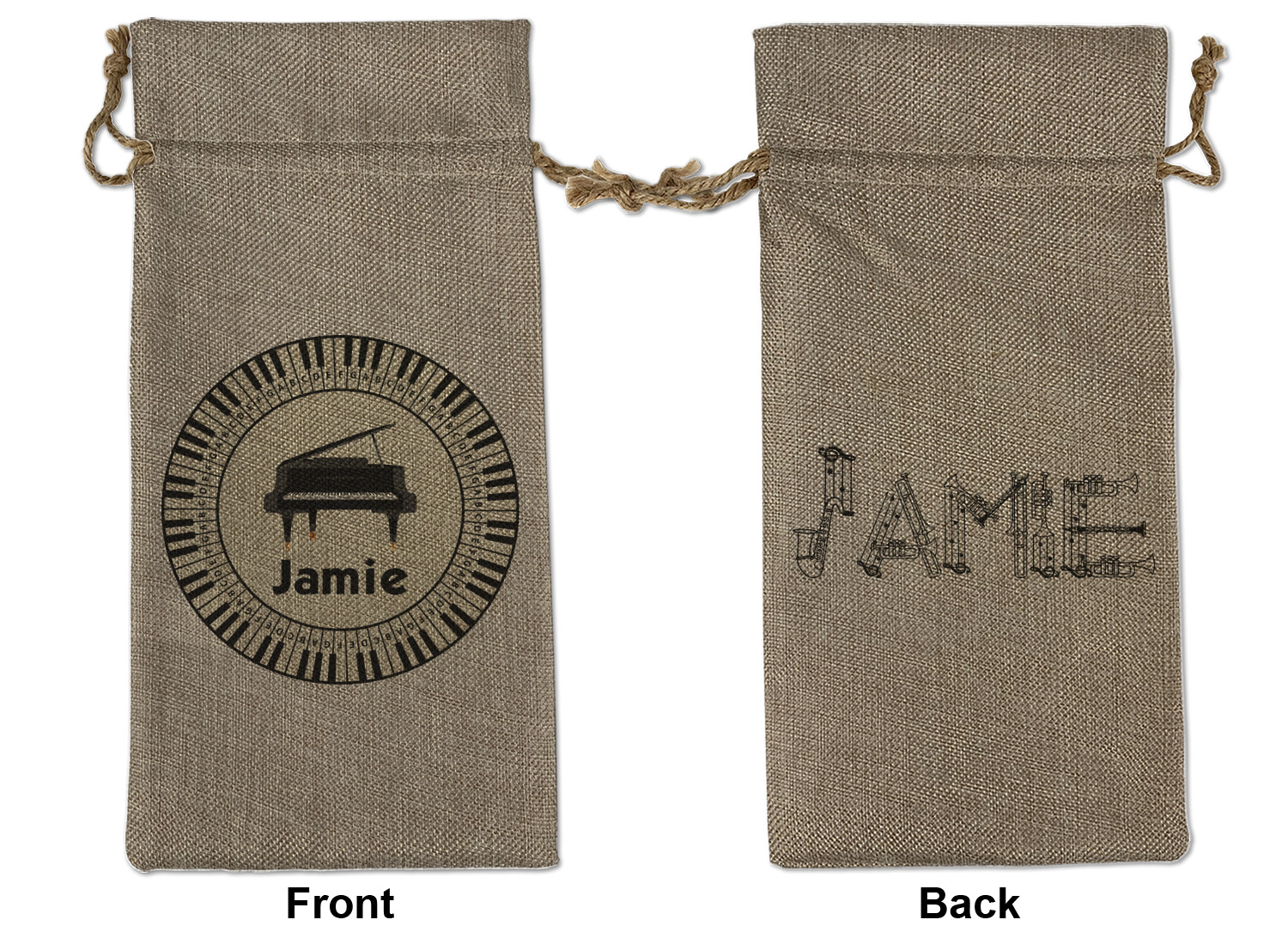 We sell our Burlap Gift Bags in 3 variant sized bags. Made with burlap polyester, each personalized bag can be secured with a twine drawstring pull. Your custom design is available to print on one side or both sides - completely up to you! The sizes of the bags measure approximately 4.5" x 6.5" for the smallest size, 6.5" x 8.0" for the medium size, and 6.5" x 13.5" for the large-sized bag.
