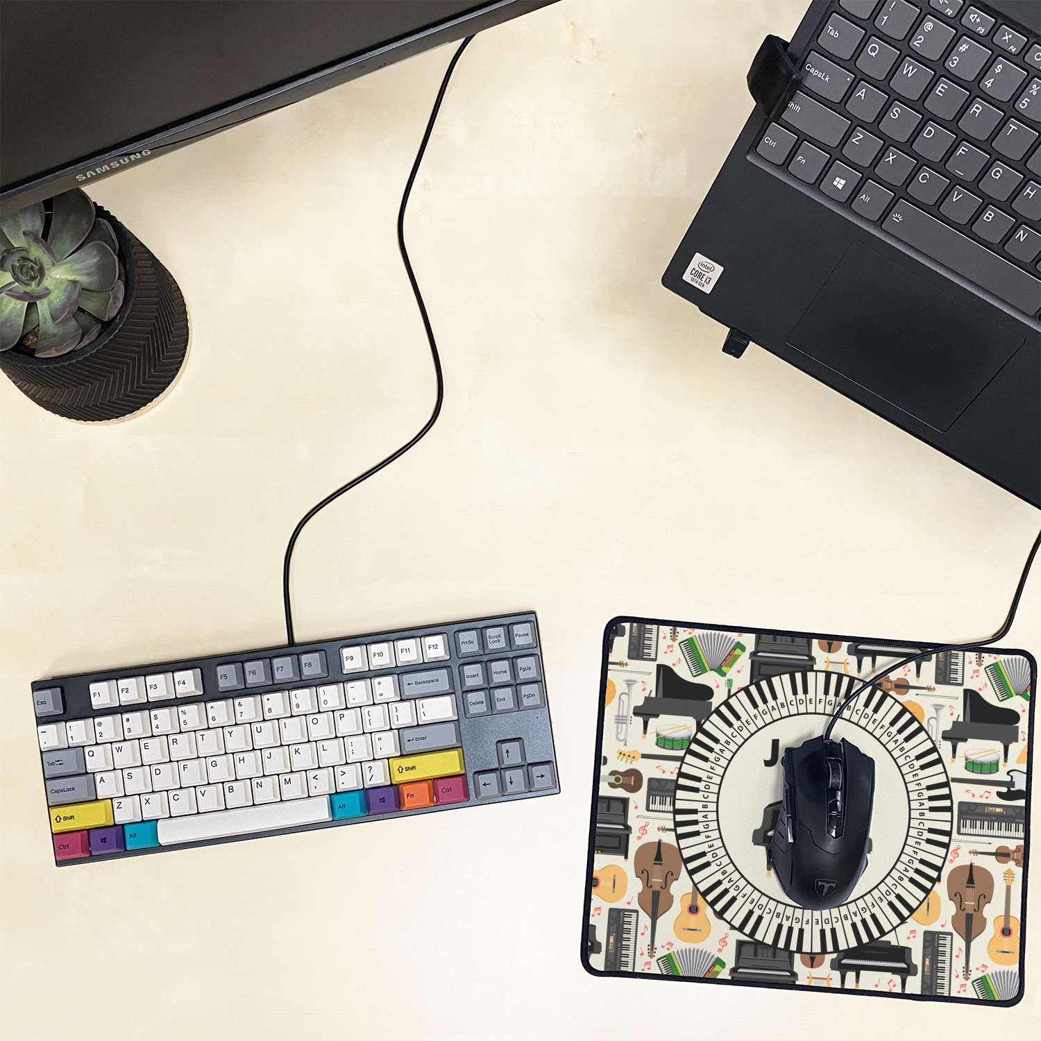 The background in the design is part of a set of music backgrounds - so it can easily be swapped out for a different background. We have a number of other musical frames / labels that you can also choose from. For the center graphic, all the musical instruments are in our system, so you can easily switch out the instrument.